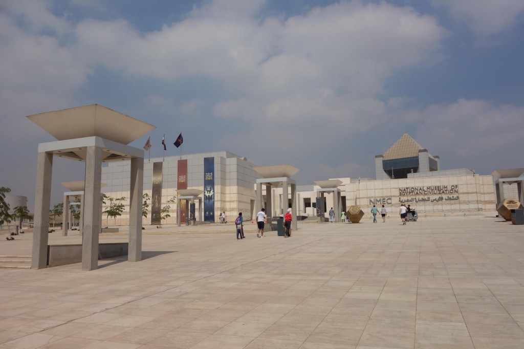 O Museu Nacional da Civilização Egípcia, por sua vez, fica em Fustat, a primeira cidade fundada pelos árabes no Egipto, hoje às portas do Cairo, e abriu de forma parcial em 2017. Aliás, muito ainda está em desenvolvimento, no âmbito de um projecto mais alargado de reabilitação da vizinhança, e os seus jardins ainda não estão totalmente abertos ao público, embora possamos desfrutar do cenário incrível do seu exótico lago Ain Al-Sira.
