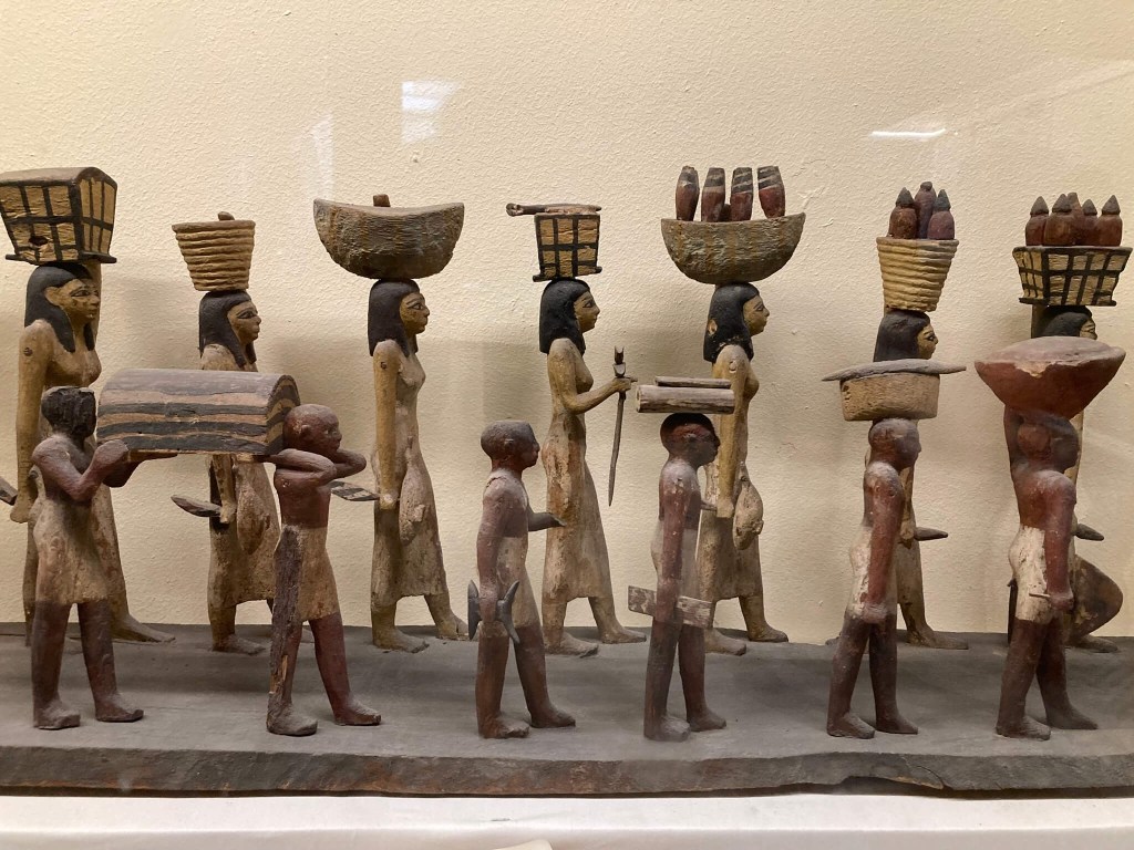 Mas este museu não se limita à exposição de múmias. Pelo contrário, a sua boa organização permite-nos acompanhar a história da antiga civilização egípcia desde a época da sedentarização das sociedades do Vale do Nilo, no longínquo Neolítico, onde a agricultura desempenhava um papel primordial na vida dos antigos egípcios e foi o motivo para o seu sedentarismo. Umas esculturas mostram a representação de figuras a fazer pão, um dos mais antigos produtos baseados em culturas agrícolas, e com elas aprendemos que os antigos egípcios conheciam mais de 40 tipos de pão, variando os ingredientes e a forma, e que já na época havia sobremesas e que a palavra egípcia que se lhe referia – ka’k – está na origem da palavra cake usada em muitos pontos do globo.