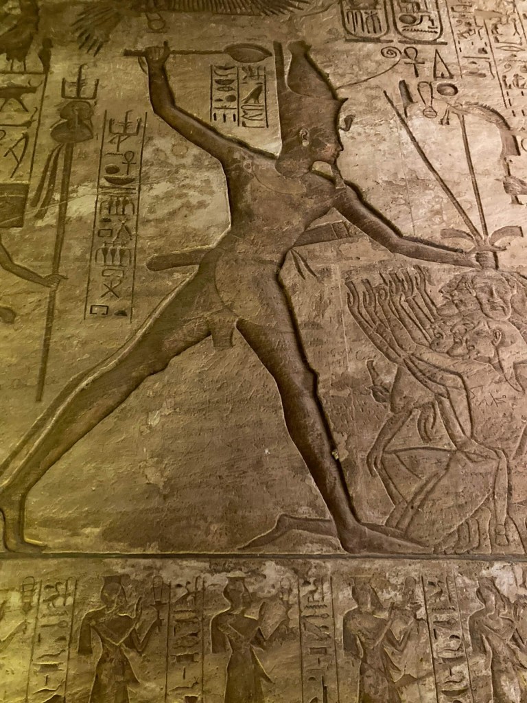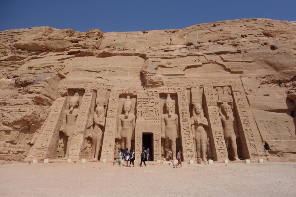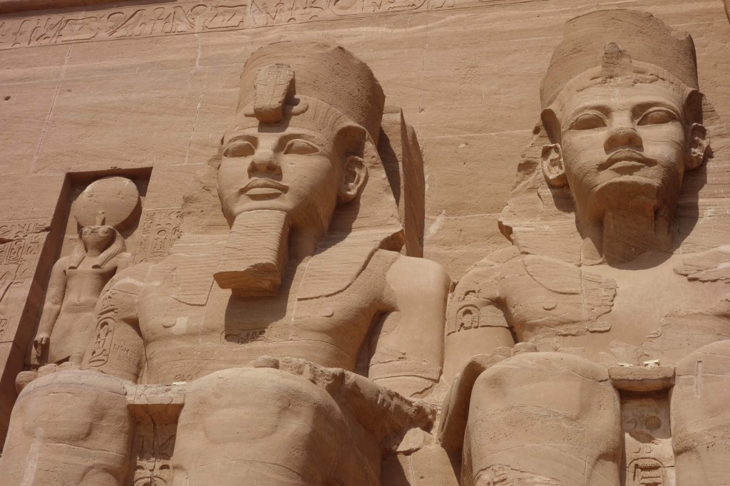 Abu Simbel, na fronteira sul do Egipto com o Sudão, é um dos sítios mais espectaculares. Construído por Ramsés II em honra de si próprio e da sua amada, Nefertari, são dois templos enormes escavados numa montanha sobre o Nilo. Impressionante e inesquecível a fachada do templo principal, com as quatro colossais estátuas do faraó.