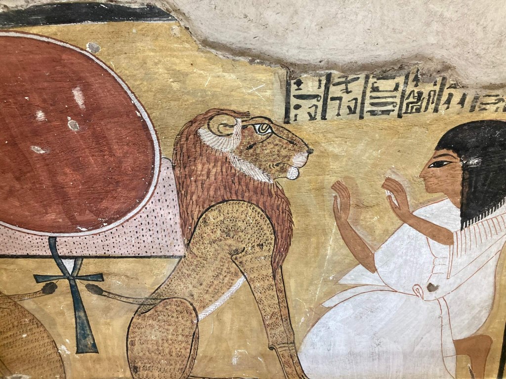 À entrada, pela Porta Síria, uma estátua de Sekhmet, a deusa da guerra com cara de leão.