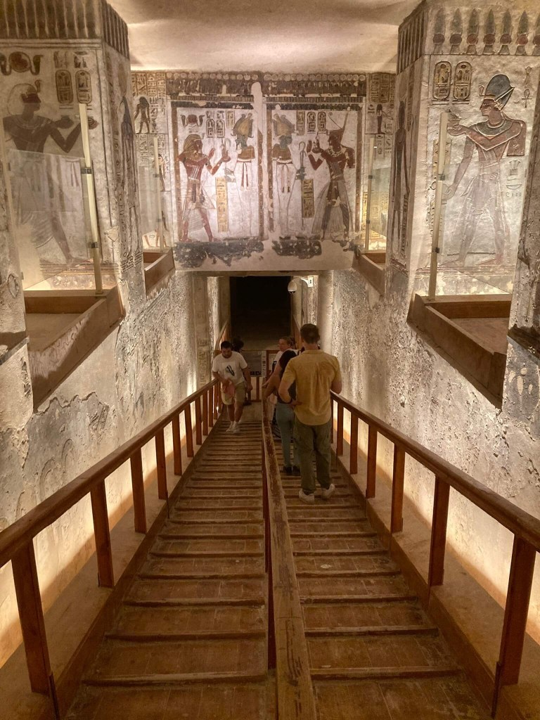 Para chegar ao Vale dos Reis desde o centro de Luxor a melhor opção é através de um tour privado previamente combinado com os monumentos a visitar – são inúmeros, é de lembrar que em Luxor estão um terço de todos os monumentos antigos do mundo. De carro é quase uma hora de viagem e os monumentos estão espalhados pelo deserto, pelo que a passagem de uma margem à outra do Nilo por barco não será uma boa opção. O bilhete para o Vale dos Reis custa cerca de 13 euros (em 2022) e dá direito à visita a três túmulos de um total de oito abertos (vão variando, por questões de conservação – para se ter uma ideia, o pó e a respiração que nós, visitantes, transportamos connosco é susceptível de colocar em causa os túmulos e a sua decoração). Para além destes, há túmulos que exigem um bilhete extra, como o de Seti I (KV17 – 51 euros, o mais fabuloso), Tutankhamon (KV62 – 15 euros) e Ramsés VI (KV9 – 5 euros). Sabendo o que sabemos hoje teríamos ficado uma semana inteira só em Luxor e com o Premium Luxor Pass, com o custo de 200 dólares, teríamos direito à entrada em todos os monumentos de Luxor, incluindo o túmulo de Seti I e o de Nefertari (Vale das Rainhas). Com apenas um dia dedicado à margem ocidental de Luxor há que ser criterioso e não muito ambicioso, de forma a conhecer-se convenientemente as maravilhas escolhidas, deixando inevitavelmente muito mais de fora.