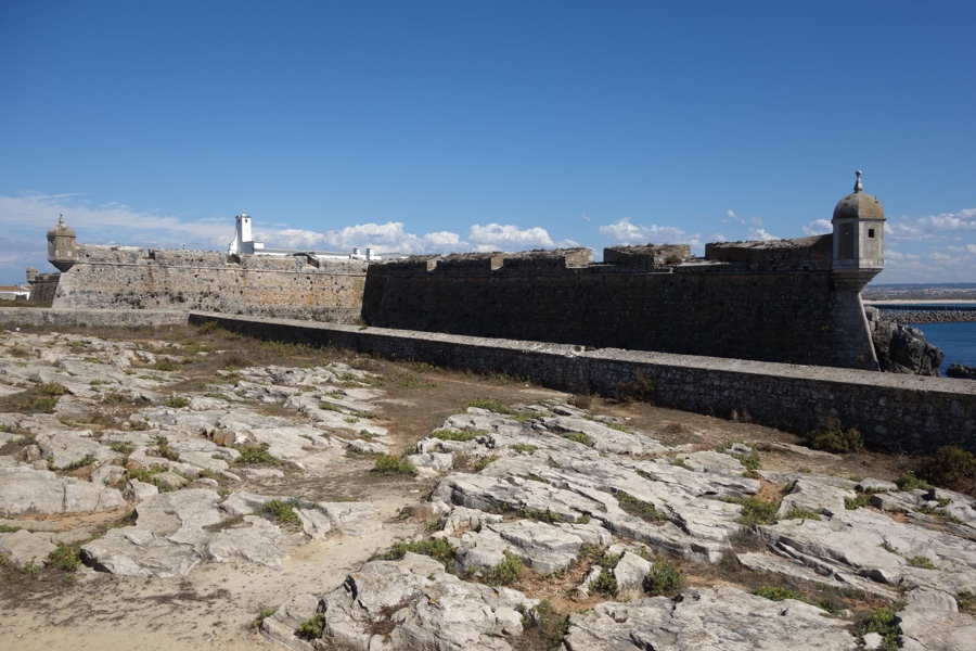 Mas é a forma que a costa toma na península o enorme atractivo de Peniche. Em cerca de 8 kms rodamos ao longo dela, desde a Papoa à Fortaleza. A rocha calcária rude cheia de cortes e lascas preenche todo o contorno de terra e mar, não apenas na península de Peniche mas também na península vizinha do Baleal. Pequenas reentrâncias, falésias com rochas afiadas e outras redondas, parece haver formas para todos os gostos.