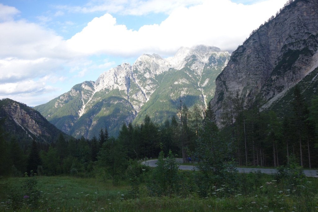 Daqui sai a estrada que é conhecida por Passo de Vrsič, onde os veículos rolam a mais altitude na Eslovénia. Inaugurada em 1917, liga Kranjska Gora, a 810 metros, ao Vale de Trenta, a 620 metros, passando pelo ponto mais elevado do Vrsič, a 1611 metros. Tem 24 kms de extensão e 50 curvas no total, 24 a subir e 26 a descer. No Inverno a circulação por esta estrada está encerrada, em consequência do tapete de neve que aqui é costume instalar-se nessa época. Conduzir por esta estrada é uma aventura e um prazer e as paisagens de alta montanha ao longo dela, está bom de ver, são excepcionais, com uma série de picos brancos rugosos a destacarem-se afiados bem perto de nós.