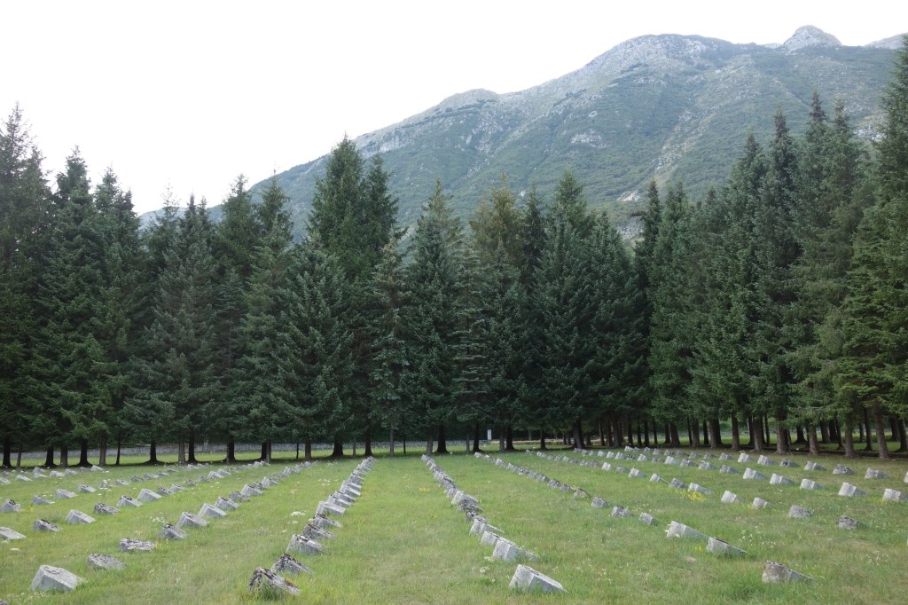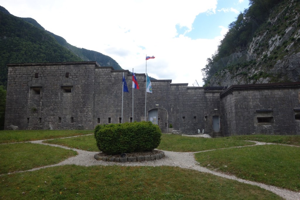 Entretenimento e natureza à parte, a região é também parte da história contemporânea, sendo rico em património histórico-militar da I Grande Guerra Mundial. Acima havíamos falado do Passo de Vrsič / Estrada Russa e o Vale de Trenta foi ainda palco de algumas batalhas naquela que ficou conhecida como a Frente de Isonzo. À saída de Bovec em direcção à fronteira italiana vemos um cemitério de soldados austro-húngaros com cerca de 600 campas rasas. A pouca distância ficam duas interessantes estruturas militares de construção anterior à I GGM, o Forte Kluze e o Forte Hermann, um de cada lado da estrada num lugar de importância estratégica. O Forte Kluze fica imediatamente acima do desfiladeiro do rio Koritnica, bem mais alto e tão apertado e azul como o rio Soča, e ao longo dos séculos têm servido de defesa em vários momentos da história: no século 15, ainda uma fortificação de madeira, face às invasões turcas, no século 18, já uma estrutura de pedra, face aos ataques do exército de Napoleão e no século 20 como parte da Frente de Isonzo face aos avanços italianos.