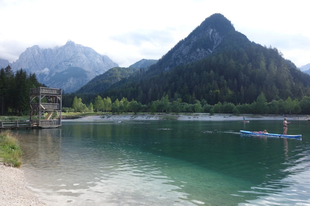 Depois do Lago Bohinj, a primeira paragem pelo PN Triglav aconteceu em outro lago, no Jana, em Kranjska Gora, uma aldeia de montanha com chalets e pistas de ski. Não obstante ter sido criado artificialmente e ser incomparavelmente mais modesto em dimensão, é bem pitoresco, como que dois lagos siameses. Mas é a paisagem que o rodeia que nos assoberba, com picos majestosos que se levantam num ápice.