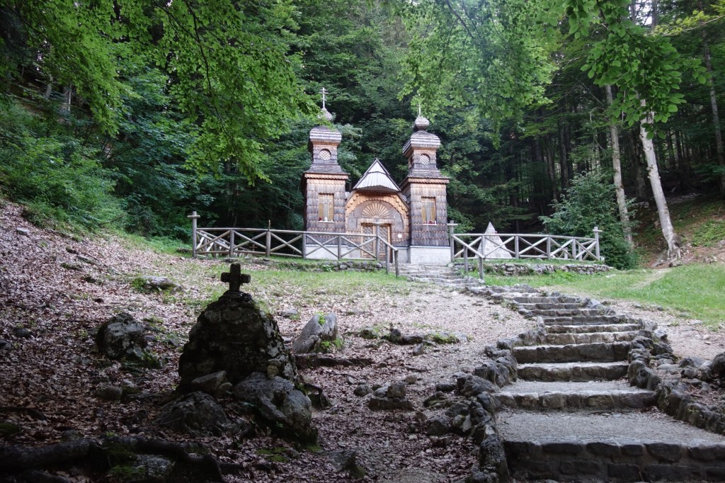 Para além das vistas, a grande atracção da subida é a Capela Russa, à beira da estrada algo escondida na vegetação. O porquê de uma capela russa neste local tem uma razão de ser. Durante a I Grande Guerra Mundial, Kranjska Gora era um importante cruzamento para passagens militares (relembre-se que esta é uma zona de fronteira, então entre o Império Austro-Húngaro e a Itália). Quando a Itália declarou guerra à Áustria, em 1915, a passagem pelo rio Soča (Isonzo, para os italianos) tornou-se de importância estratégica e, assim, os austríacos destacaram para aqui mais de 10 mil prisioneiros de guerra russos no sentido de construirem a estrada que hoje conhecemos por Passo de Vrsič ou Estrada Russa. Acontece que uma avalanche em 1916 soterrou mais de uma centena de russos e guardas austríacos e no ano seguinte, em sua homenagem, prisioneiros russos sobreviventes ergueram a pitoresca Capela Russa em sua memória.