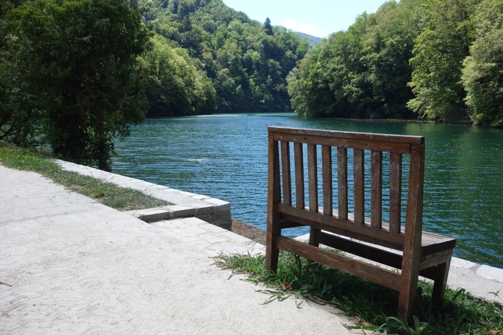 De entrada paga, o caminho marcado do Tolmin Gorge tem 4 kms que se percorrem em 1h / 1h30m, dependendo da nossa capacidade de reagir ao deslumbramento da paisagem natural. O trilho está humanizado, sempre com um corrimão a acompanhar as muitas escadas que nos fazem subir bem, mas o desfiladeiro por onde correm os dois rios é brutal, com o rio a nadar lá bem em baixo – os desníveis são profundos e de uma verticalidade extrema. Há aqui algumas atracções a compor o cenário, como uma fonte de águas termais de um azul intenso numa gruta (não visitável), a Ponte do Diabo a uma altura impressionante, uma pedra suspensa entre dois penedos que mais parece uma cabeça de urso e faz de ponte natural entre eles, uma gruta que leva o nome de Dante por, diz a lenda, o poeta aqui se ter inspirado a criar o inferno na sua Divina Comédia. Tudo isto sob uma vegetação típica que é uma mistura de Alpina e sub-mediterrânea.