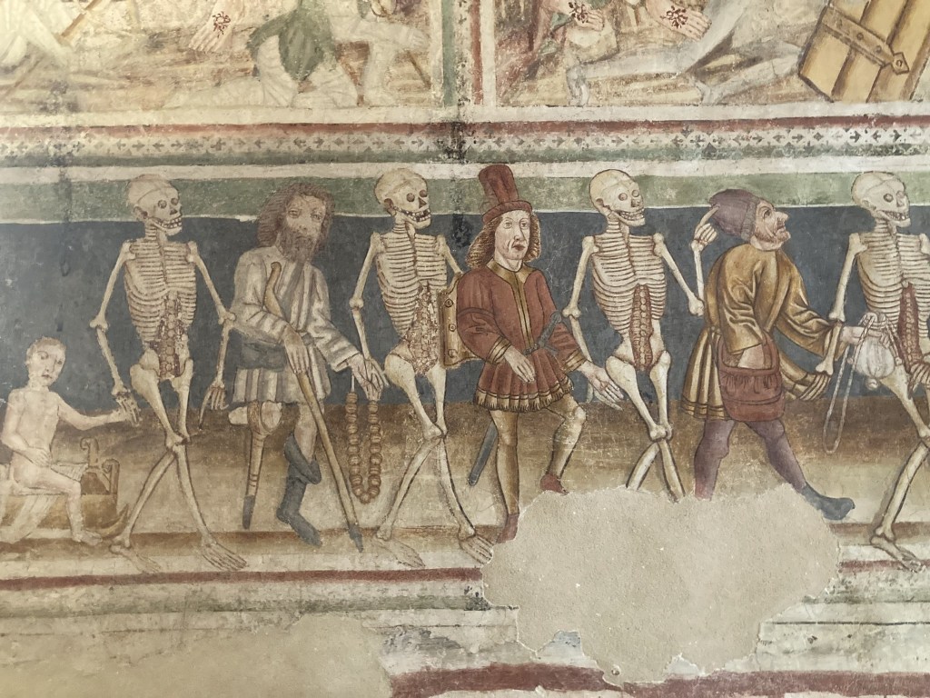 É uma igreja em estilo romanesco, fortificada e construída entre os séculos 12 e 13 como defesa contra os turcos e guerras austro-venezianas, e está instalada numa colina elevada em relação à vila e ladeada por uma extensa “parede” calcária. Para quem gosta de fortificações e paisagens, já valeria a pena perceber a forma e implantação desta, mas é o interior da igreja que nos fez vir até ela. Inteiramente decorada com frescos do século 15, o seu programa iconográfico representa cenas bíblicas do Génesis, da vida de Maria e de Jesus e vários santos. No entanto, são os frescos referentes à Dança da Morte ou Dança Macabra que nos roubam a atenção. Uma surpresa a fechar o passeio pela Istria eslovena.