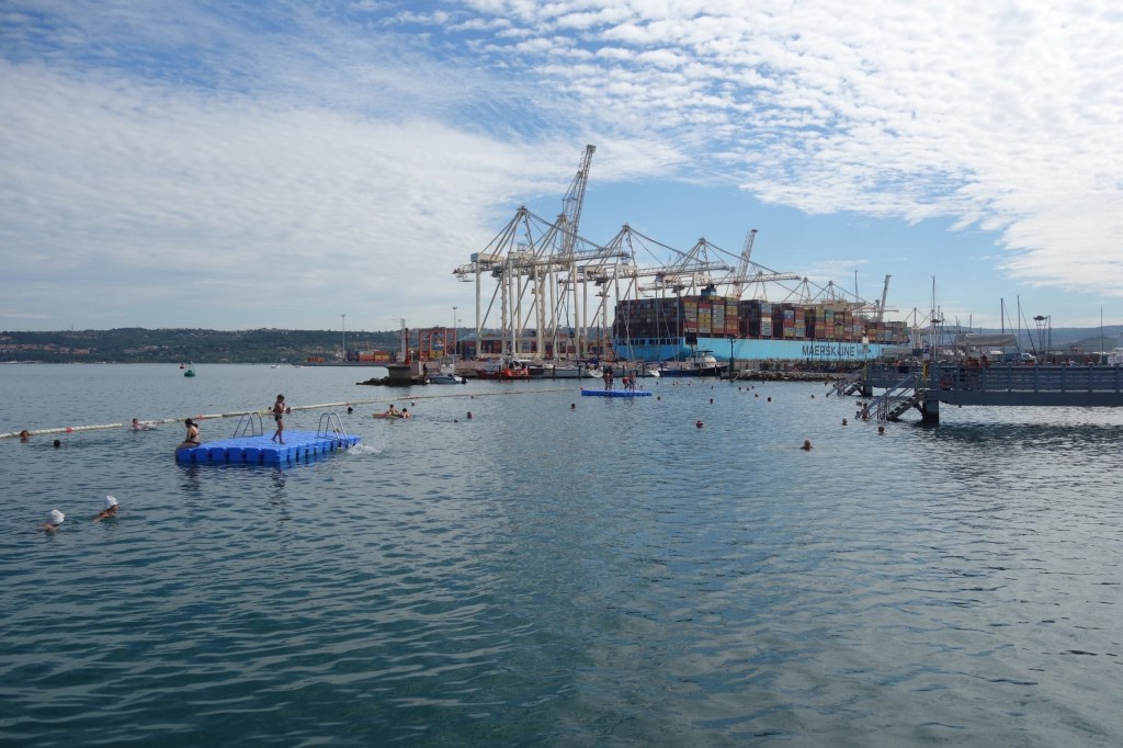 Começámos por um retemperador mergulho no Adriático, passando de uma experiência imersiva das águas alpinas para as mediterrâneas; claro que a temperatura da água estava mais para Lago Bohinj do que para rio Soča. De Fiesa até ao centro de Piran, e aí ao longo de toda a frente de mar da povoação, há uma promenade pronta a ser por nós desfrutada, seja para uma entrada no mar, um estender da toalha por entre as rochas ou tão somente apreciar as vistas.