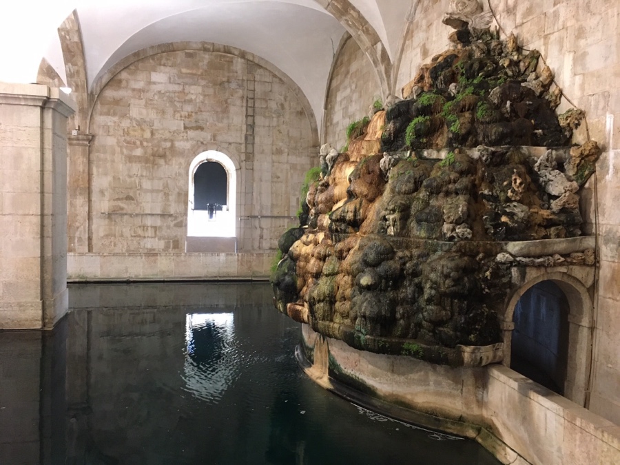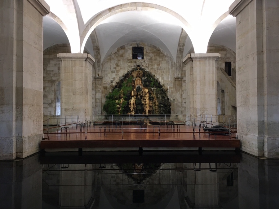 Já quanto ao Reservatório da Mãe de Água das Amoreiras não dizemos que “pode”, mas antes que “deve” ser visitado. Igualmente parte integrante do Museu da Água, pertencente à EPAL, a sua visita é uma das maiores surpresas da cidade de Lisboa. O interior do tal edifício de fachada grandiosa consegue ser igualmente majestoso. A cisterna de água, um tanque de 28,6m por 24,4m, com capacidade para 5500 m3, está envolvida por colunas e um tecto abobadado. O ambiente é austero, quase de catedral, com uma acústica fantástica que percebemos pelo som da queda de uma gota de água aqui ou ali. Para completar este cenário já de si perfeito, vemos ainda uma cascata com motivos vegetalistas e água a cair da boca de um golfinho.