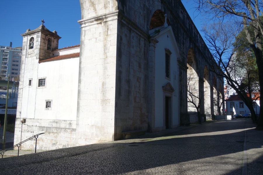 O Aqueduto das Águas Livres, uma das maiores obras de engenharia do nosso país e marco essencial na história do abastecimento de água à cidade de Lisboa, foi mandado construir por D. João V em 1731 e tem como seu troço mais emblemático a arcaria sobre o vale de Alcântara. É a sua imagem maior, indisputável, mas se há troço com possibilidade de o secundar em beleza e grandeza, o das Amoreiras é um deles. Ainda para mais, aqui fica o Reservatório da Mãe de Água, projectado em 1746 pelo arquitecto húngaro Carlos Mardel, cuja construção ficou concluída apenas em 1834. O grandioso edifício quadrangular, com apontamentos artísticos na fachada, como as gárgulas na cornija, são o remate perfeito enquanto estrutura terminal do Aqueduto das Águas Livres.