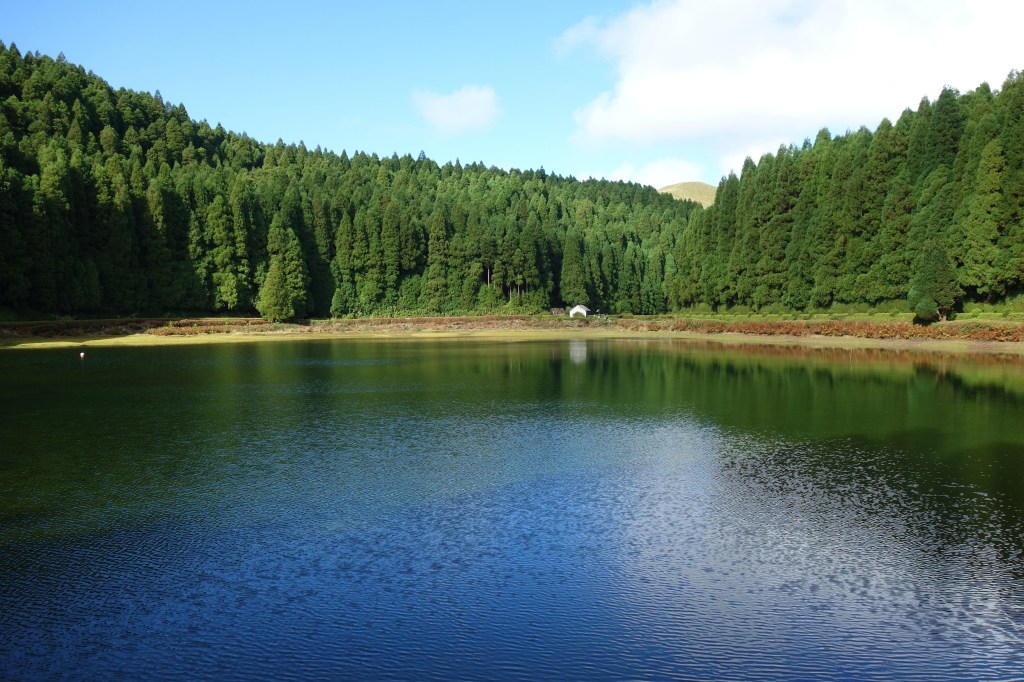 De volta, entramos em novo mundo encantado de criptomérias que nos deixa diante as duas Lagoas das Empadadas. Ambas lindas, uma é maior do que outra e estão separadas por um estreito caminho. Fizemos questão de as percorrer a toda a volta, fruindo de cada detalhe ao som dos pássaros. Impressiona a mancha densa de criptomérias que as rodeia.
