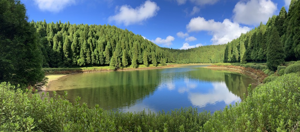 O percurso oficial continua até ao seu final, mas prosseguimos até à Lagoa e Mata do Canário. Mais uma lagoa inspiradora e cheia de ambiente, está também numa cratera vulcânica pejada de vegetação, incluindo na água.