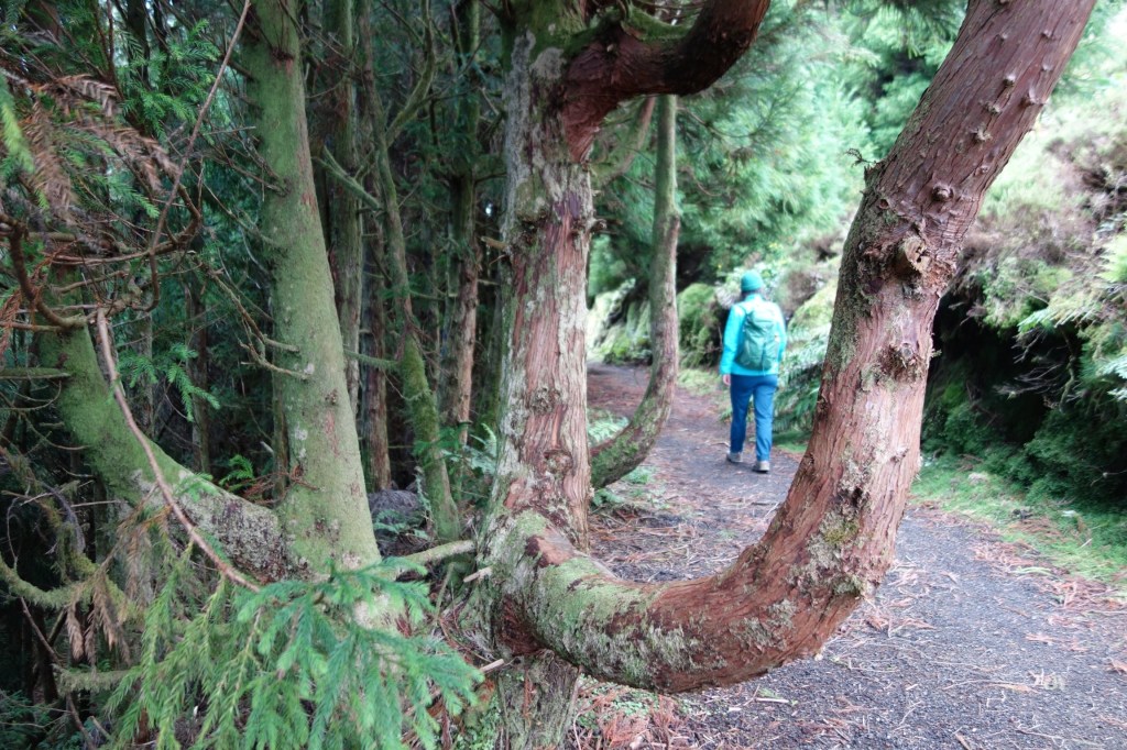 E, de repente, entramos por uma vegetação cerrada. As criptomérias tornam quase impenetrável a luz natural e a grande humidade existente ao longo de todo o ano nesta zona permite a existência de musgos (sphagnum sp) de diversas tonalidades, fazendo deste um ambiente mágico.