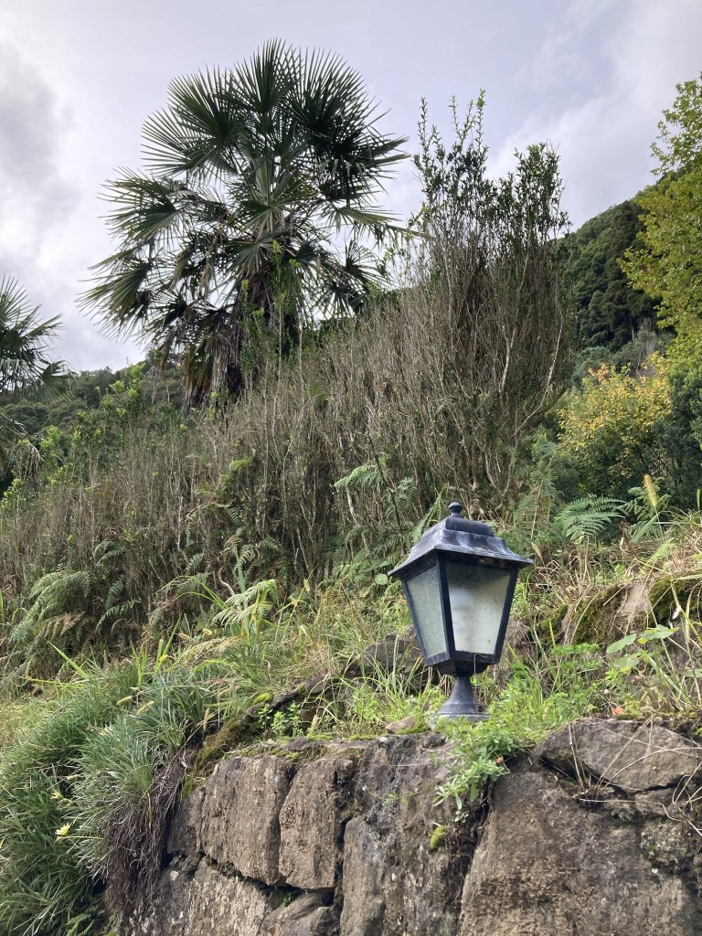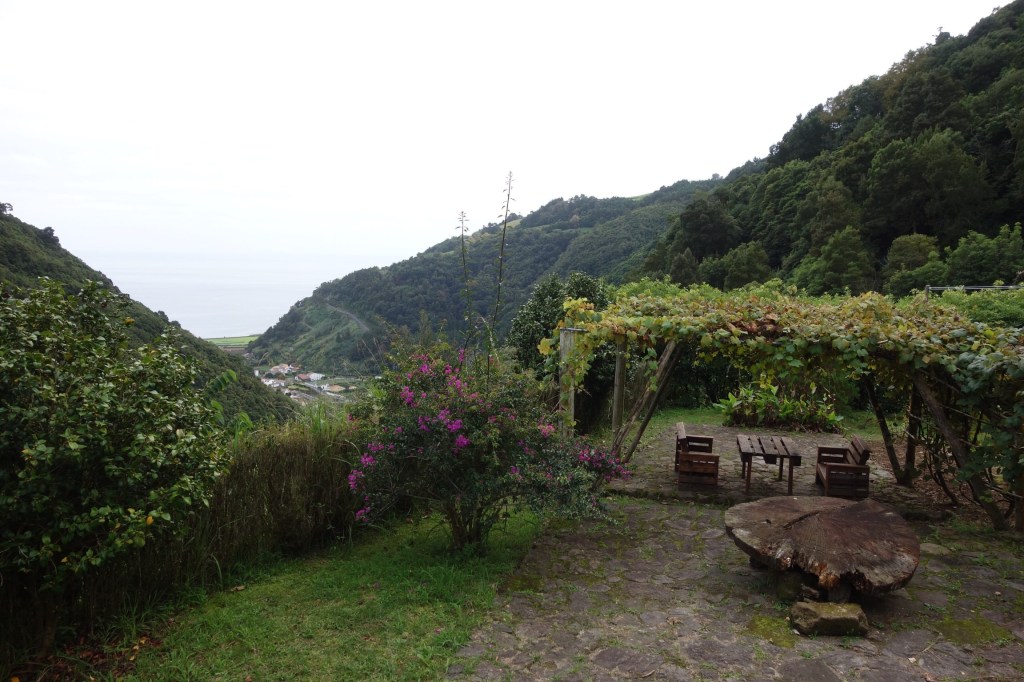 No que poderá muito bem ter sido em temos uma eira, hoje há um jardim com uma latada e cadeiras que convidam à contemplação do vale e do mar, com a povoação do Faial da Terra abaixo.