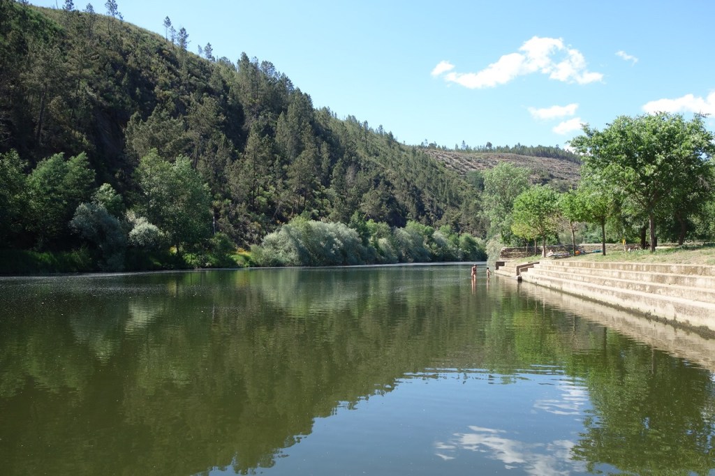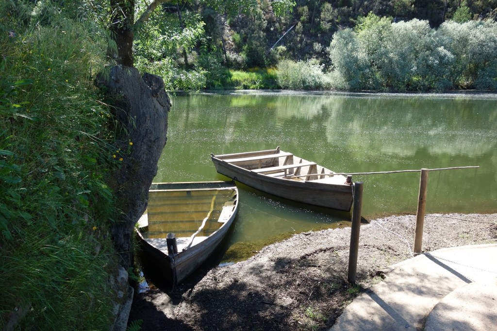 O rio é outro elemento incontornável à aldeia. Foi ele que assegurou a subsistência das suas gentes, proporcionando água para a rega dos campos e para os moinhos. Um moinho junto ao rio, onde se anuncia a Roda de Janeiro, é disso testemunho, mas não encontrámos o lugar bem preservado. Pelo contrário, a praia fluvial da Lavandeira, ao seu lado, está impecável, um parque de merendas e zona de lazer de excelência, devidamente acompanhada por mais um momento paisagístico do Zêzere de grande nível. E, novamente, não falta um elemento que remete para um costume tradição local, desta vez a barca. “Ó da barca!”, era assim que se gritava quando havia que fazer a travessia do rio entre as duas margens. Hoje ainda lá estão umas barcas, mas agora usadas para passeios no rio.