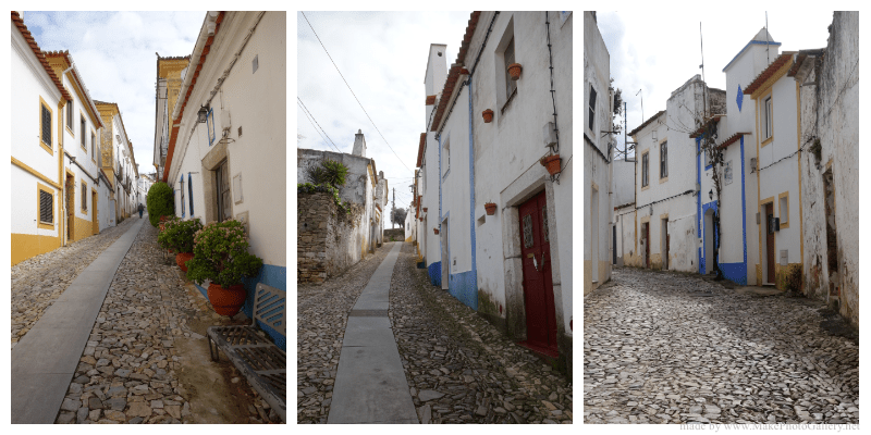 Umas poucas ruas estreitas de traçado irregular e calçada de pedra sobem a encosta e levam-nos até à parte alta da vila. Este núcleo urbano primitivo tem uns quantos edifícios conservados – alguns deles antigos solares -, tipicamente alentejanos na sua cor branca com listas azuis ou amarelas e decorados com vasos de flores.