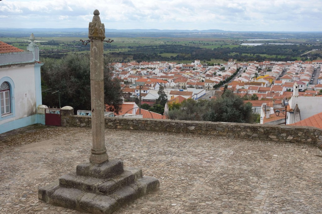Não deixamos Fronteira sem referir o maior acontecimento histórico de que foi testemunha. E recomendar uma visita ao Centro de Interpretação da Batalha de Atoleiros. A primeira de várias batalhas entre portugueses e castelhanos durante a crise dinástica de 1383/85, tendo antecedido a Batalha de Trancoso e de Aljubarrota, aconteceu a 6 de Abril de 1384 no lugar que Fernão Lopes, cronista do reino, décadas depois deixou escrito distar meia légua (equivalente a 2,5 kms) de Fronteira, num monte chamado Atoleiros. Localizado genericamente o lugar onde se terá travado a batalha, hoje propriedade privada (logo a impossibilidade de nele construir o centro de interpretação), o topónimo Atoleiros remete para a natureza argilosa dos terrenos lamacentos numa área rica em água pela presença da Ribeira das Águas Belas, seus afluentes e nascentes – foi aí instalado um Monumento Comemorativo (que não vimos) e o Terreiro da Batalha dos Atoleiros classificado como monumento nacional em Janeiro de 2023.