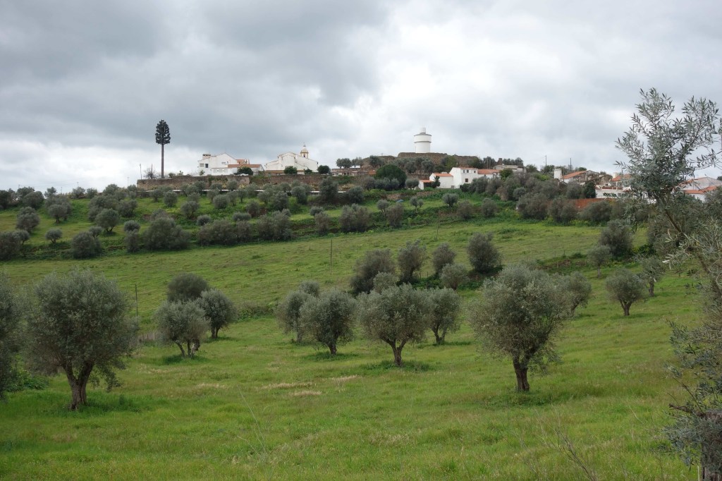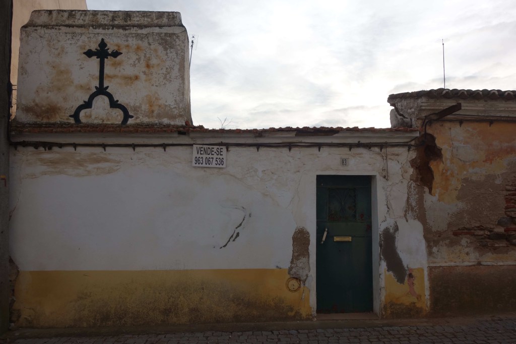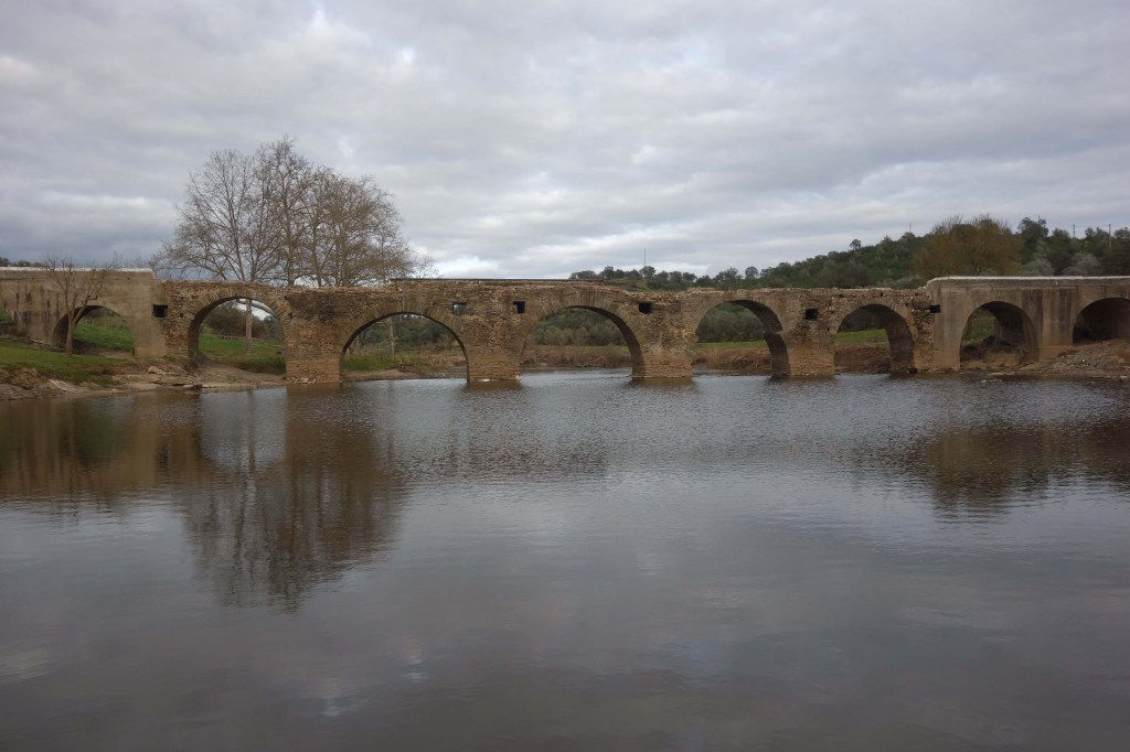 Do alto de Cabeço de Vide, numa paisagem a perder de vista, vê-se Fronteira, a sede do concelho. É para lá que vamos agora. Em condições normais, e como se faz há centenas de anos, quer desde Cabeço de Vide quer desde Alter do Chão e as demais terras a norte, entraríamos em Fronteira pela Ponte da Ribeira Grande. Infelizmente, desde Dezembro de 2022, o ex-libris de Fronteira ficou muito destruído pelas fortes chuvadas, arrasando o seu tabuleiro e tornando-o intransitável. Dada a pouca força do município no panorama nacional e o descaso do restante país, a situação não mudará tão cedo. Quando visitámos o lugar, em Março seguinte, a violência provocada pela subida da água era ainda evidente, com cabos de electricidade derrubados e vegetação arrastada que ocupava agora à toa as margens da ribeira. De qualquer forma, os dez arcos semicirculares desta ponte granítica que se crê romana lá estavam sobre a ribeira, produzindo inspirados reflexos e dando origem a um efeito cénico admirável. Neste lugar de represas e azenhas fica a Praia Fluvial de Fronteira e esperemos que o Verão possa trazer-lhe de novo alegria.