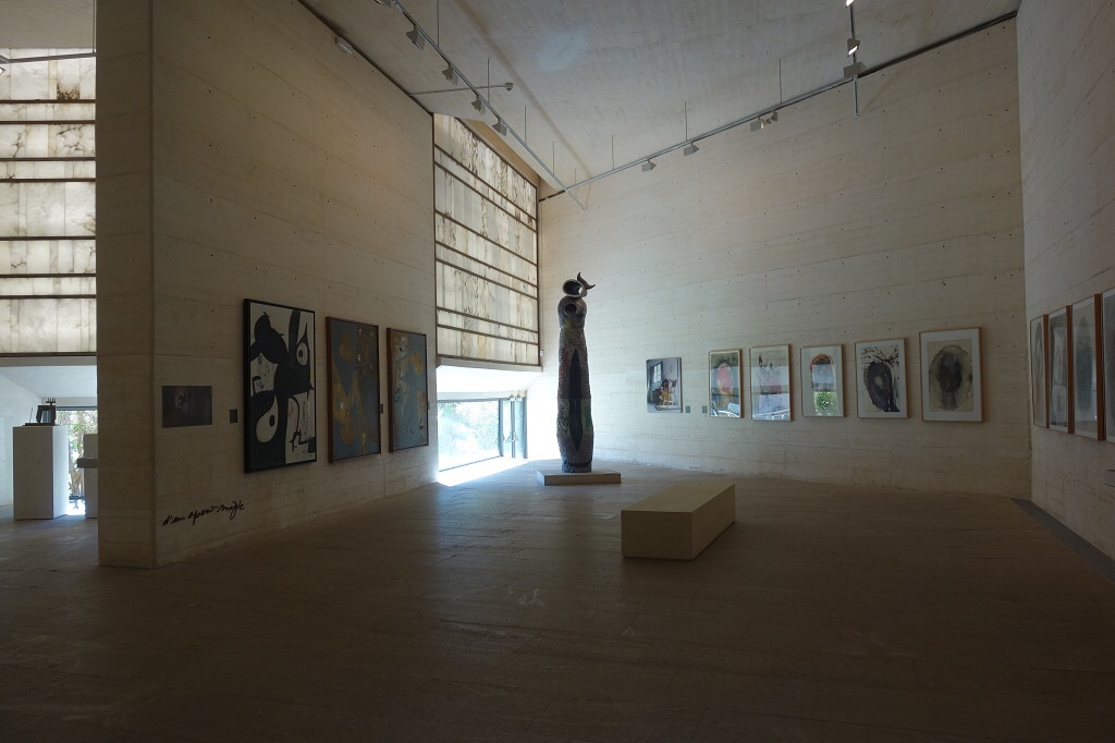 Entretanto, em 1992 surgiu o Edifício Moneo, a sede da fundação projectada por Rafael Moneo, Pritzker de arquitectura em 1996. Este edifício pretende ser uma espécie de cidadela que se abstrai do entorno urbano caótico ao seu redor – prédios e mais prédios encosta fora a caminho do mar. E consegue-o. À entrada vemos o telhado coberto de água, como que aproximando o mar e o horizonte e simulando a vista de que gozava Miró. E no interior podemos ver parte da colecção de Joan Miró – pintura, desenho e escultura. E perceber como as formas das pinturas de Miró são intemporais: assim como o homem pré-histórico deixava a sua marca nas paredes das covas, também o uso das mãos é importante para Miró (havíamo-lo visto nas paredes das salas do Son Boter). Os jardins ao redor do Edifício Moneo, com plantas autóctones da ilha e com esculturas de Miró, propõem-se uma vez mais a recuperar a envolvente natural entretanto perdida e alcançam a fusão da arte e arquitectura defendida por Miró. Este é, no fundo, uma boa imagem da Palma do século 21, uma cidade que para além da desordem urbana fora do centro histórico mantém uma bem conseguida união entre património e arte.