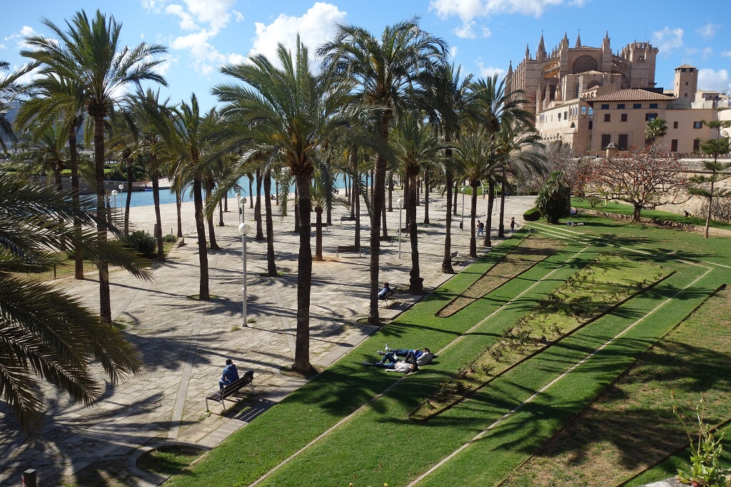 Feita esta apresentação da cidade, nada como começar o passeio por Palma pela sua magistral catedral. É uma das maiores da Europa e ocupa uma vasta área na frente marítima, um colosso artístico. Conhecida por La Seu pelos maiorquinos, a sua construção teve início em 1300 no lugar de uma anterior mesquita e levou mais de 300 anos até estar concluída. Originalmente em estilo renascentista, a destruição do terramoto de 1851 levou a que fossem introduzidos elementos do gótico tardio. Os seus portais são profusamente ornamentados, tanto o portal do Mirador, virado ao Mediterrâneo, como o portal de la Almudaina, virado ao palácio de mesmo nome.