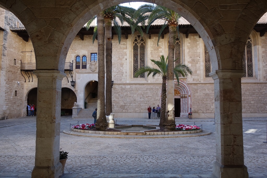 Ao lado da Catedral está o Palácio Almudaina e o Horto do Rei, originalmente a fortaleza islâmica e alcazar dos governadores. Acredita-se que, anteriormente, os romanos haviam construído aqui um castro, mas o certo é que no final do século 13 a fortaleza foi convertida em residência dos reis de Maiorca (embora desde 1349, com a morte de Jaime III, nenhum rei tenha aqui vivido de forma permanente) e hoje continua residência oficial dos Reis de Espanha quando visitam Maiorca (embora gostem de usar outro palácio na ilha). Com a Torre del Ángel a encimá-lo, no pátio do palácio está uma fonte com leão, um dos poucos elementos dos mouros que restam, e daqui uma escadaria leva até às várias salas correspondentes aos apartamentos reais e outras divisões – no meio de muita tapeçaria, destaque para a Sala Maior, um grande salão gótico para cerimónias com uma sucessão de arcos.