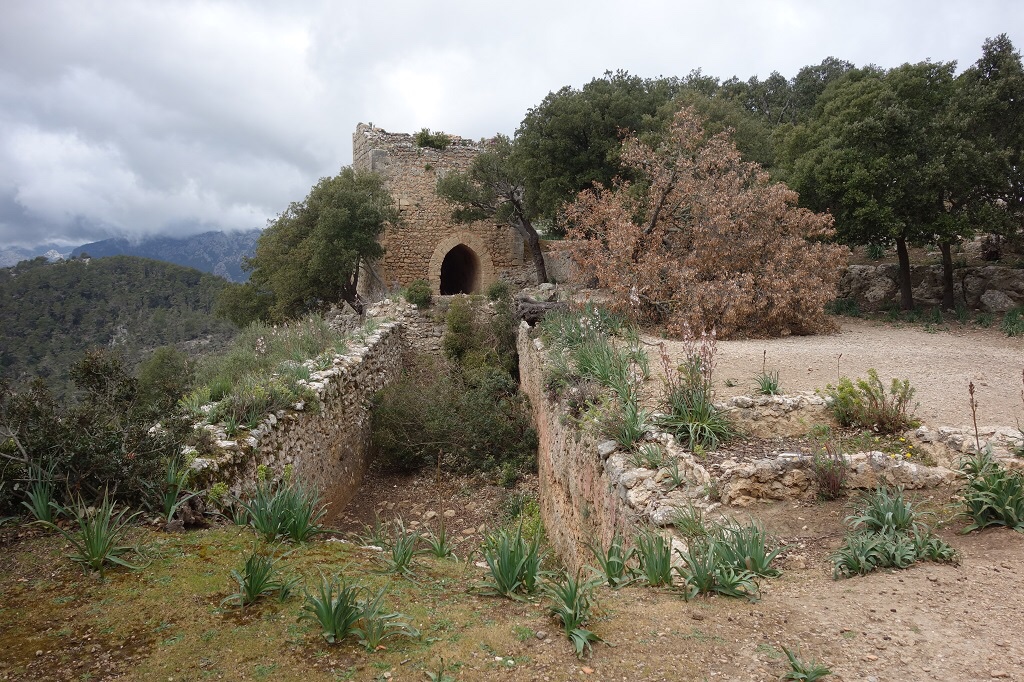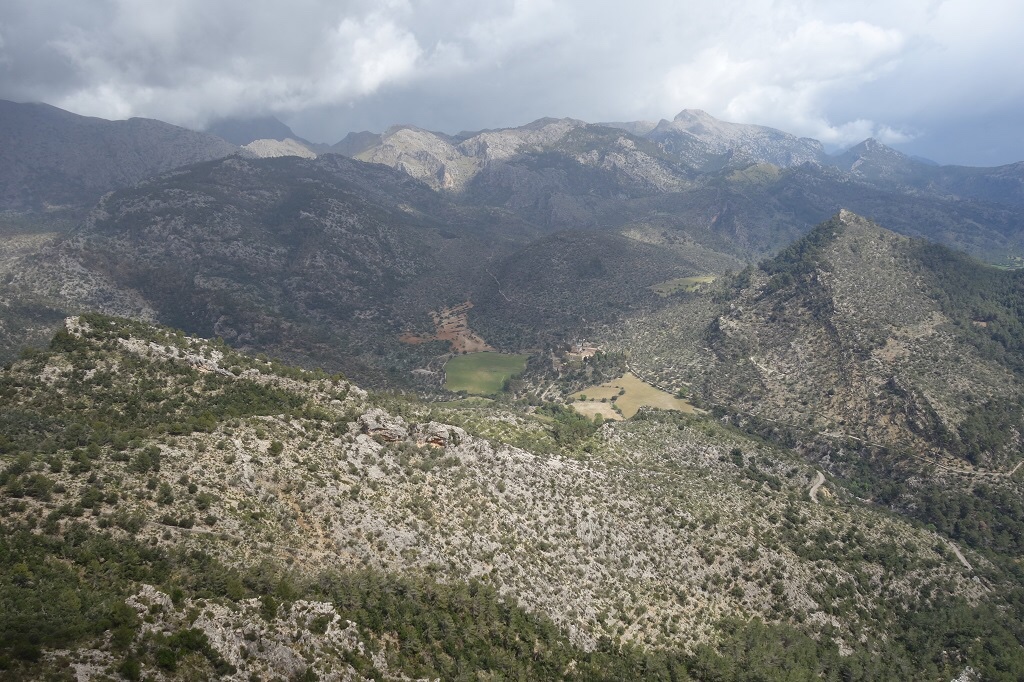 As vistas do alto da fortaleza, já se adivinha, são fabulosas – estamos no Puig d’ Alaró e vemos o Puig de s’ Alcadena (e sabemos que do outro lado está o Tossals Verds e as barragens de Cuber, donde saem uma série de caminhadas, e pouco mais longe estará o Puig Major, o maior da ilha, com 1445 metros de altitude). Um imenso cabeço calcário com vegetação no cimo faz-nos lembrar a imagem da Chapada da Diamantina, no Brasil, mesmo que nunca lá tenhamos estado. É um cenário deveras impressionante, daqueles para jamais esquecer.