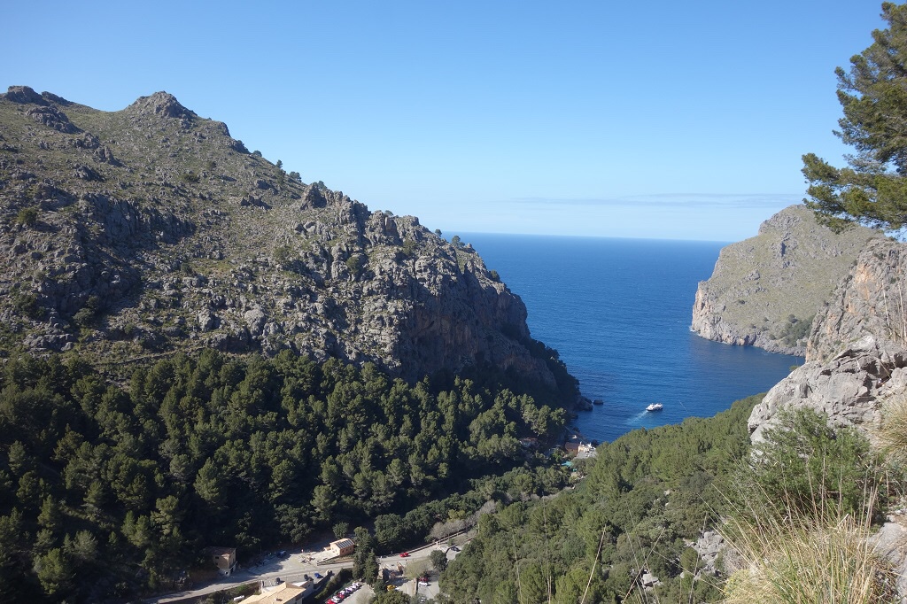 Para algo totalmente diferente nesta jornada, mas uma constante na Tramuntana, dirigimos agora em direcção ao mar da costa noroeste de Maiorca. A estrada oferece cenários de montanha incríveis, mas à aproximação de Sa Calobra a própria estrada torna-se uma atracção. É a carretera MA-2141 que, com os seus ziguezagueantes 14 quilómetros, é considerada uma das mais bonitas e espectaculares de Espanha. Por entre curvas apertadas que se sucedem umas às outras, num asfalto algo estreito que tem de ser partilhado entre carros e bicicletas, esta estrada construída em 1932 vence um desnível de 800 metros entre a serra e o mar, com grandes vistas das falésias na viagem. O azul do mar vai anunciando-se em determinados pontos de vista.
