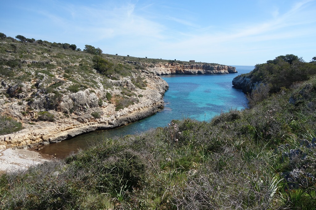 Nordeste de Maiorca: Cales de Maiorca – Cala Bóta, Cala Virgil, Cala Magraner e Cala Pilota. Por entre pinheiros, oliveiras, cardos e giestas, muitas enseadas para adentrar.