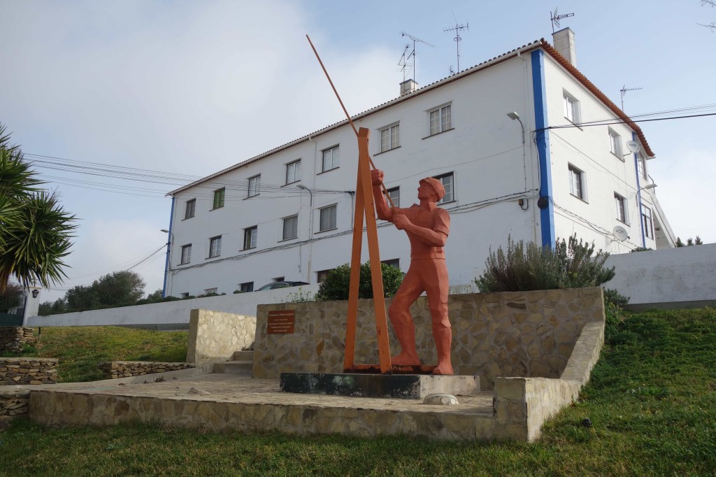 Com vista para a vila, uma perfuradora e um malacate (uma torre em ferro que servia de transporte vertical pelo poço da mina) antecipam a entrada no bairro mineiro de Val d’ Oca, um dos núcleos habitacionais criados para que os trabalhadores pudessem estar mais próximo da mina, este com a curiosidade de cada casa ter um pequeno quintal nas traseiras para fornecimento de alimentos. Entretanto, Aljustrel foi-se desenvolvendo urbanisticamente e estes bairros e a mina de Algares foram aproximando-se cada vez mais do centro histórico.