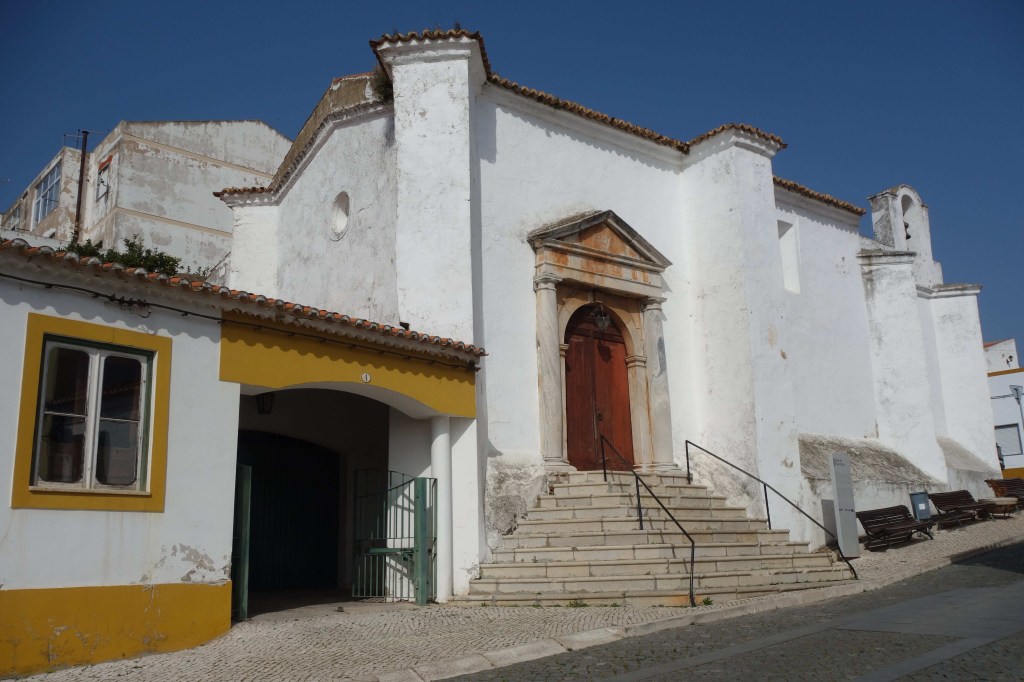 A Igreja da Misericórdia, pelo contrário, é de dimensão modesta e toda caiada de branco. Do século 16, a sua arquitectura é diferente da que estamos acostumados a ver, com uma mistura de estilos maneirista e manuelino e frontão com colunas toscanas, com a curiosidade de estar encaixada entre outros edifícios. Quase passa despercebida.