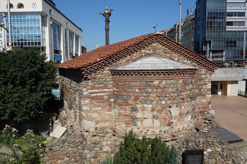 Já de volta ao outro lado do boulevard Maria Luiza, o mais surpreendente é encontrar um dos segredos mais bem guardados da cidade, a Rotunda de São Jorge. O mais antigo monumento arquitectónico de Sofia, e ainda conservado, tem origens no império romano. De forma cilíndrica e com cúpula alta, terá sido construída no início do século 4, no tempo do imperador Constantino, que visitou Serdica várias vezes e terá deixado dito ser esta a sua Roma, época em que Serdica era uma das maiores e mais importantes cidades da península balcânica. Originalmente, terá sido destinada ao culto de um santo mártir (ou seria o edifício onde se controlava a temperatura dos banhos de um edifício vizinho?) e, depois do édito de Milão que promulgou o cristianismo, em 313, a Rotunda foi transformada em baptistério para as conversões em massa à nova fé e, no século 6, em igreja, datando dessa data as primeiras pinturas no interior. À semelhança de outras, no século 16 a igreja foi transformada em mesquita e as pinturas apagadas e substituídas por motivos florais. Depois da liberação face aos otomanos, foi negligenciada e acabou por servir de mausoléu para Alexander Battenberg até à construção do seu próprio mausoléu. 1915 trouxe nova vida para a Rotunda, tendo sido reconstruída e as pinturas em camadas de diferentes épocas limpas e descobertas, voltando a ser igreja até aos nossos dias.