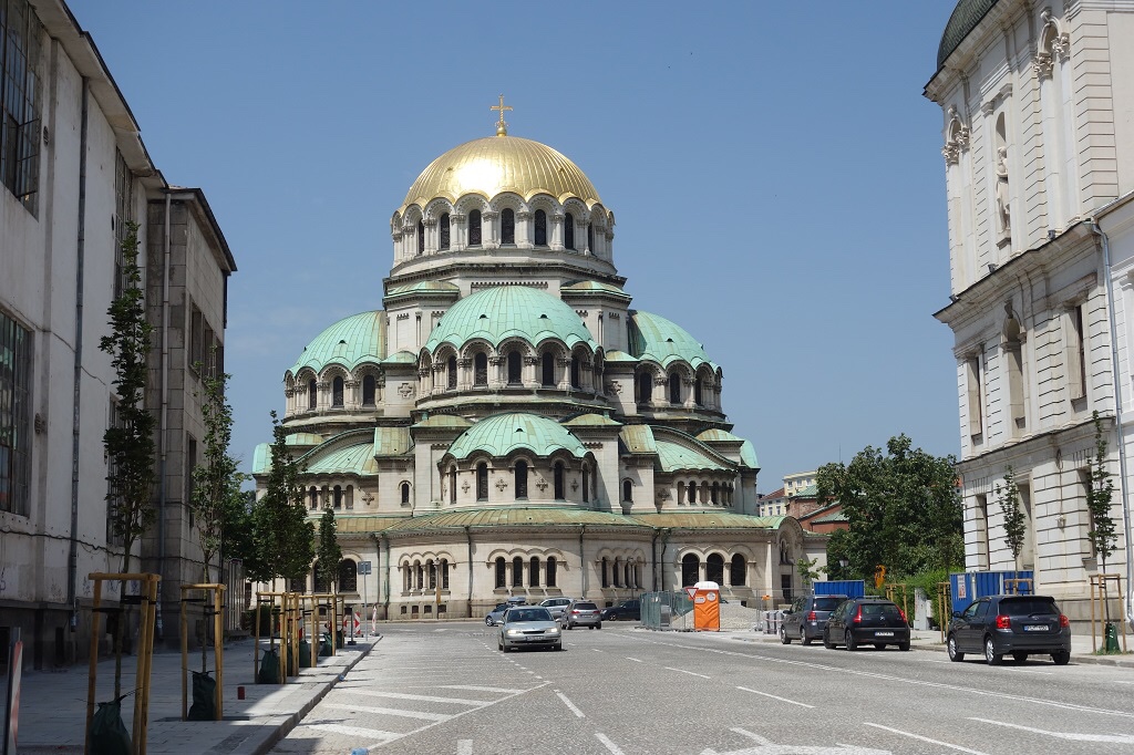 Um dos exemplos de monumentalidade que se sucedem neste centro é a Catedral de Alexandre Nevsky. Símbolo da cidade e do país, foi construída entre 1882 e 1912, em memória dos soldados russos que morreram na guerra turco-russa que trouxe a liberação da Bulgária, daí o nome da catedral, uma homenagem ao príncipe guerreiro russo do século 13. Em estilo neo-bizantino, sobressai a sucessão de cúpulas, umas verdes e outras douradas, um conjunto que é uma maravilha.