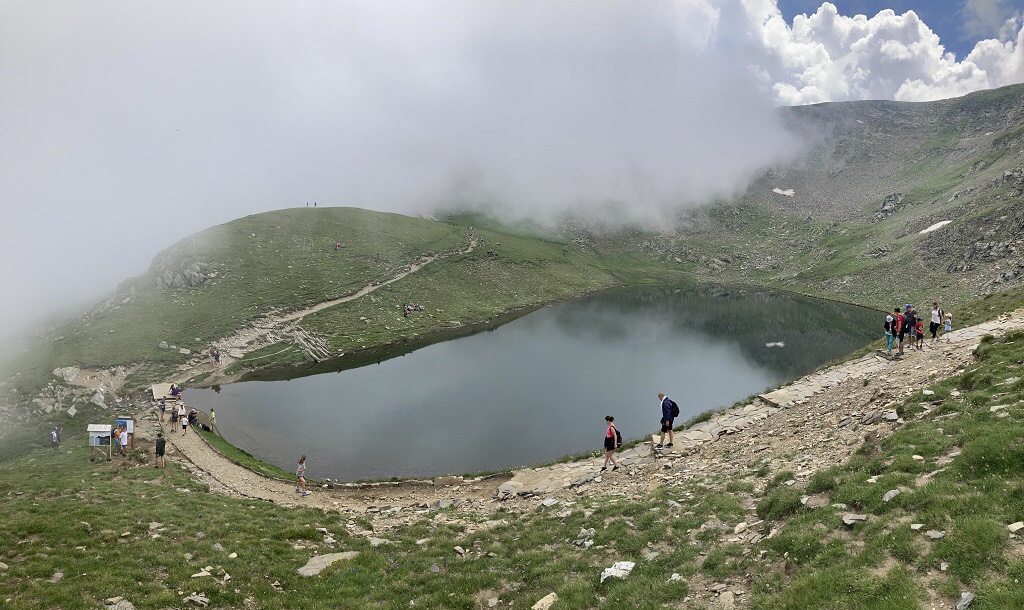 Borovets é o principal centro de apoio à temporada de ski, mas o início do trilho dos 7 Lagos de Rila acontece depois de um “voo” de cerca de 20 minutos nas cadeirinhas que saem do abrigo (hut) Pionerska, 4 kms após a povoação de Panichishte. Nos meses de Julho e Agosto esperam-se filas intermináveis para a subida e no trilho, uma vez que este é o mais famoso e concorrido de toda a Bulgária. O facto de ser muito procurado traz riscos para a natureza, como o perigo de erosão e a poluição de orgânicos para os lagos, para além de alterar a vegetação pisada. A solução passa, pois, por andar apenas nos trilhos marcados e não tomar banho nos lagos. Como percorremos o trilho em Julho, claro que, infelizmente, não evitámos a enchente de caminheiros, mas a verdade é que o cenário proporcionado pelas montanhas e lagos de Rila valem muitíssimo a pena. As paisagens são incríveis. Dada a altitude, o clima muda muito, pelo que há que levar agasalho, mesmo que o calor em baixo seja muito, e há que ser paciente face ao céu fechado – não parecia possível, mas as nuvens moviam-se numa velocidade acelerada e de um momento para o outro o que era escuro tornou-se azul.