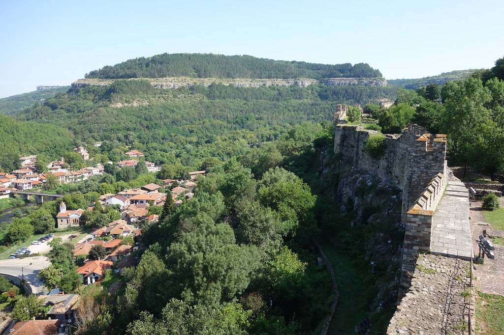 Não foi o ambiente bélico feito de canhões que nos seduziu na fortaleza, antes a bonita vista para a cidade que se espraia aos pés da cidadela, incluindo toda a sua envolvente com o irrequieto rio e uns imponentes maciços calcários. No meio da vegetação intensa descobre-se quer a Fortaleza Trapezitsa quer a igreja medieval em estilo bizantino de São Demétrio de Salónica, ambas do outro lado do rio, bem como a Igreja dos Quarenta Mártires, logo abaixo. Espalhados pela fortaleza veem-se vários projectores, parte do espectáculo de luz e som que é um dos eventos mais característicos de Veliko Tărnovo, que falhámos por não se ter realizado em nenhum dos dias que passamos por lá.