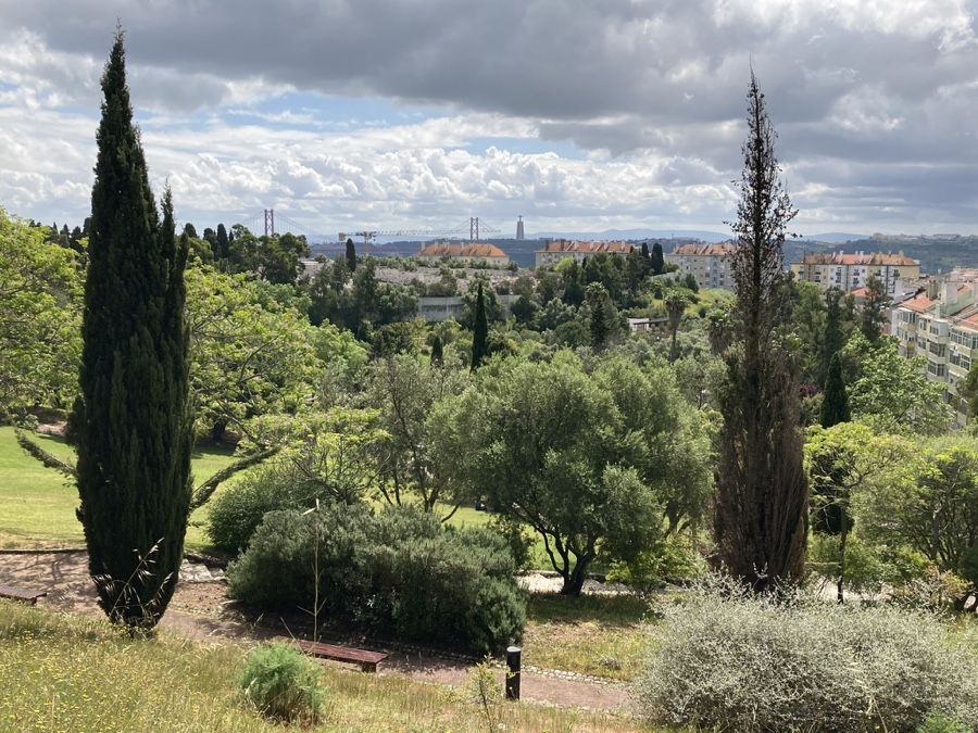 E, está mesmo a ver-se pelo nome do parque, temos os moinhos que lhe dão título, instalados na zona mais alta, precisamente o lugar do miradouro. Esta é mais uma vista grandiosa da nossa Lisboa, com o rio Tejo lá em baixo a correr sob a Ponte 25 de Abril com a anuência do Cristo-Rei para, logo depois, se juntar ao Atlântico.