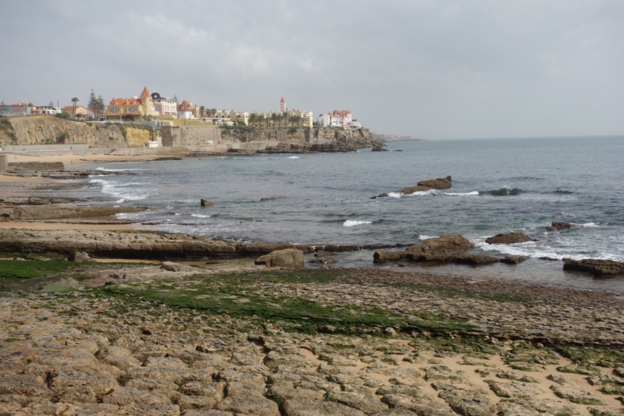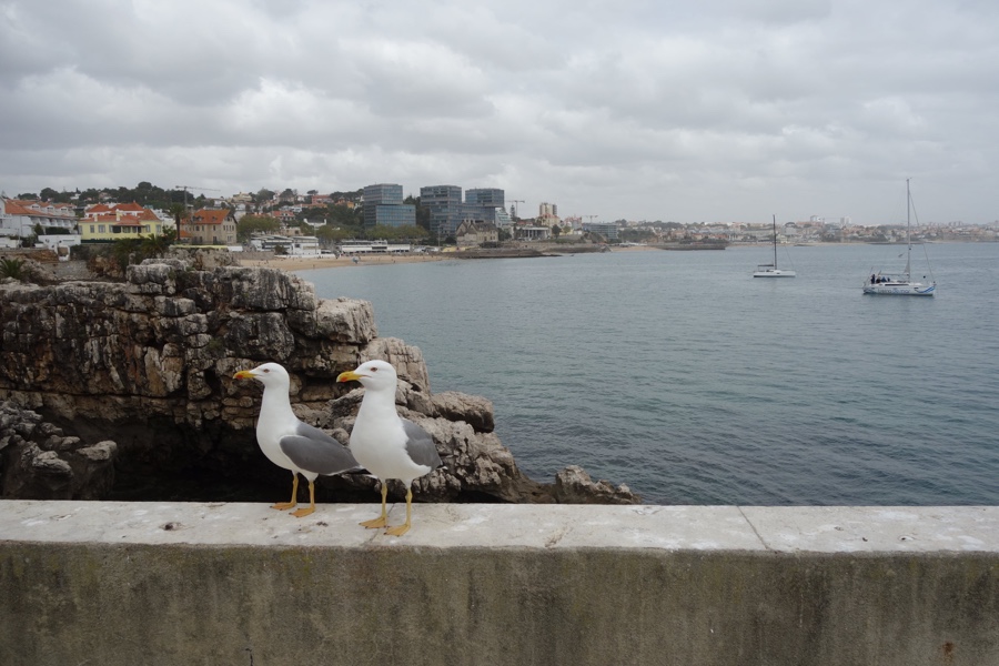 Não atravessamos a rua para ver os Jardins e o Casino do Estoril, seguindo, ao invés, pelo Paredão. Passamos pela Praia da Poça, famosa nos séculos XIX e XX pelos seus banhos, com a muralha do Forte de São Teodósio da Cadaveira graffitada.
