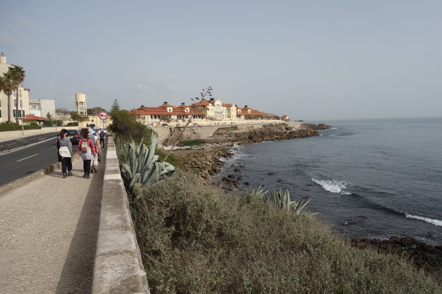 Por altura da Guia as falésias vão crescendo e vê-se até um grupo em exercícios de escalada. Pouco mais adiante, entramos na Casa da Guia, sendo recebidos pelo muito amarelo palacete oitocentista da antiga Quinta dos Condes de Alcáçovas. Espaço com lojas, restaurantes e cafés, nem o ambiente e olor de pinhal nos faz esquecer que estamos em Cascais: sopa a 13 euros?