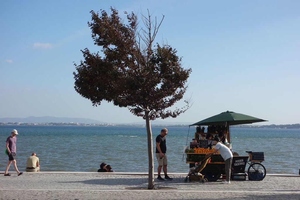 Com uma vista de estaleiros e muitas estruturas portuárias, seguimos pelo Fun Track, um passeio que é ao mesmo tempo pista de patinagem, de bicicleta e outros modos de mobilidade mais radicais, também com mesas de ping pong, quadras de basquete e cafés e esplanadas.