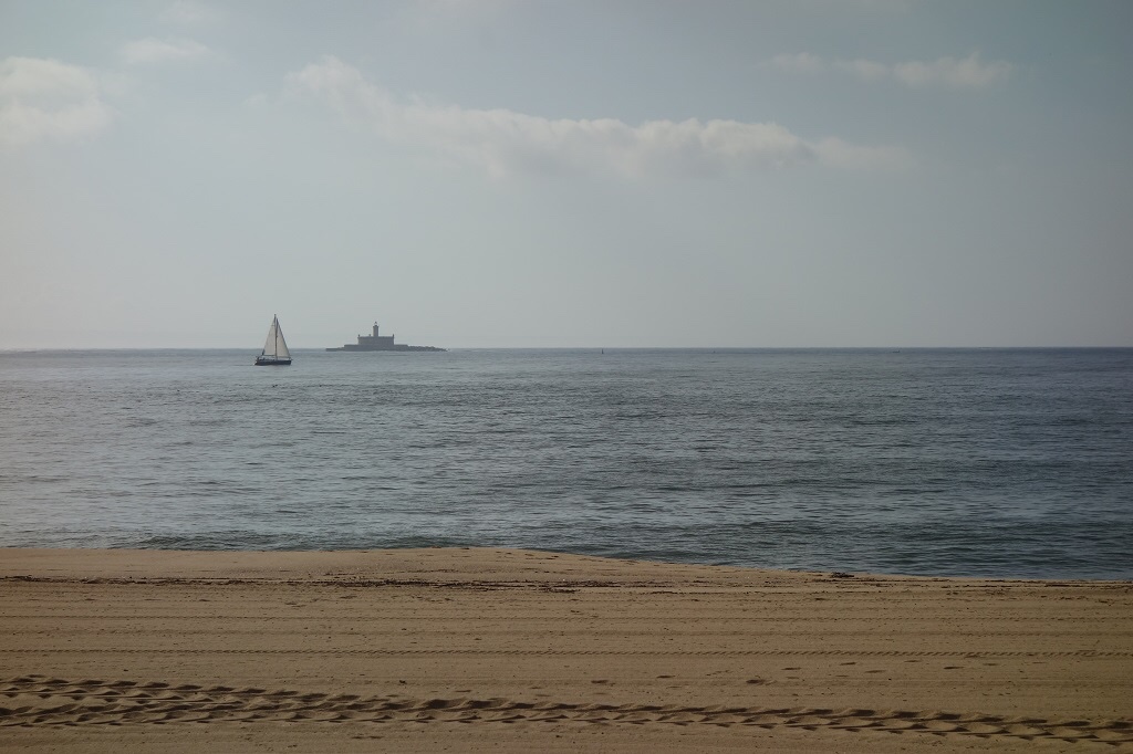 Santo Amaro de Oeiras é uma praia urbana, uma das mais frequentadas do concelho, e marca o final do Tejo, onde este se encontra com o Oceano Atlântico – é consensual que o Bugio, a “ilha” formada por um banco de areia onde está o Forte de São Lourenço e Farol, mesmo diante de Santo Amaro, faz de fronteira entre o rio e o mar. Os primeiros passos neste troço do Passeio Marítimo de Oeiras, lugar de passeio de excelência que liga a Praia da Torre a Paço de Arcos, são percorridos sempre com o Bugio como pretexto para fixarmos ainda mais o olhar nas águas do rio a tornar-se mar.