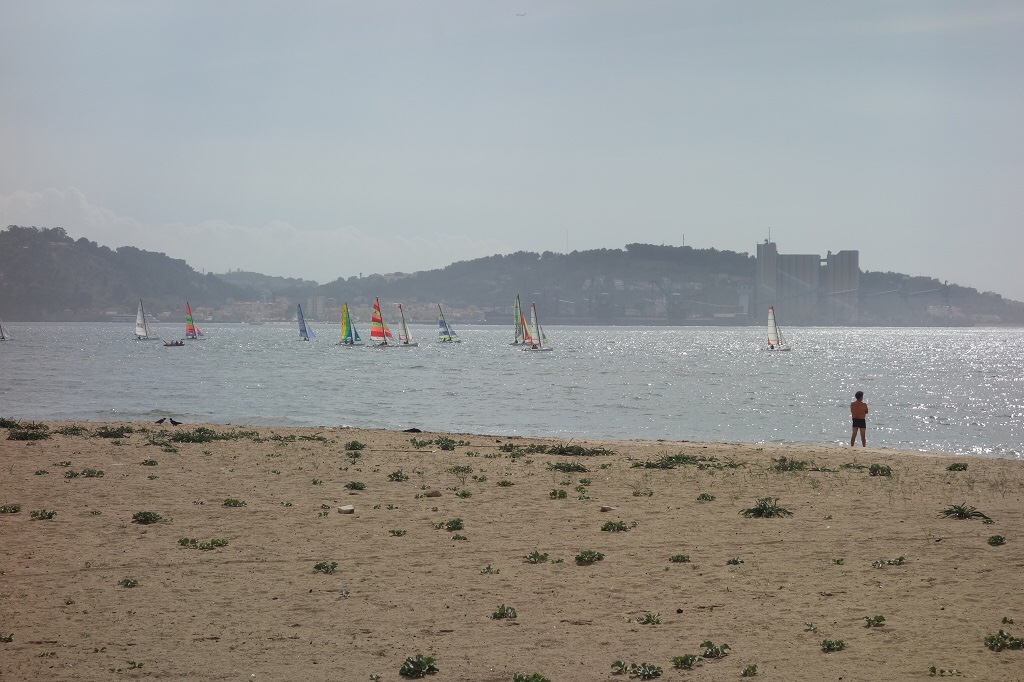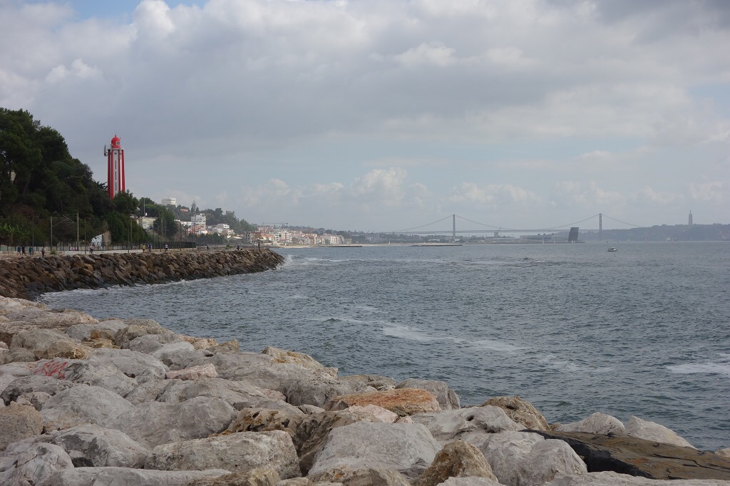 Desde aqui, um novo elemento, um daqueles inconfundíveis, irá acompanhar-nos: a vista da Ponte 25 de Abril, ao fundo, que quilómetro a quilómetro irá aproximar-se. Lisboa está de um lado, na nossa margem do rio, e Almada na outra banda, com o Cristo-Rei, os silos da Trafaria e a sua longa faixa de praias que vai até ao Cabo Espichel.