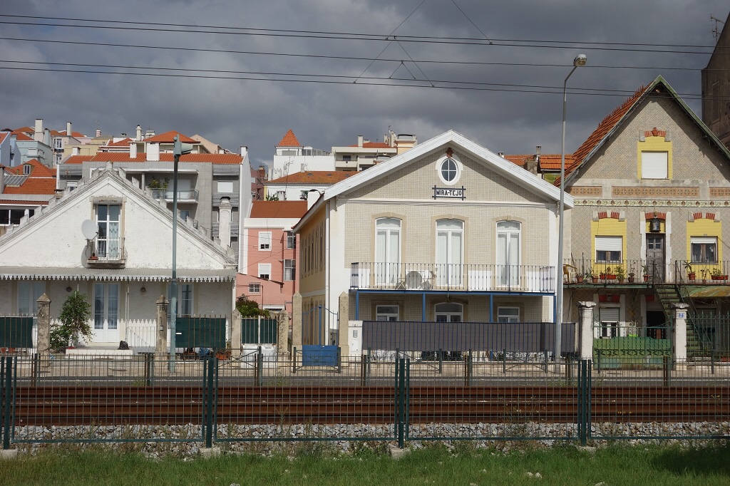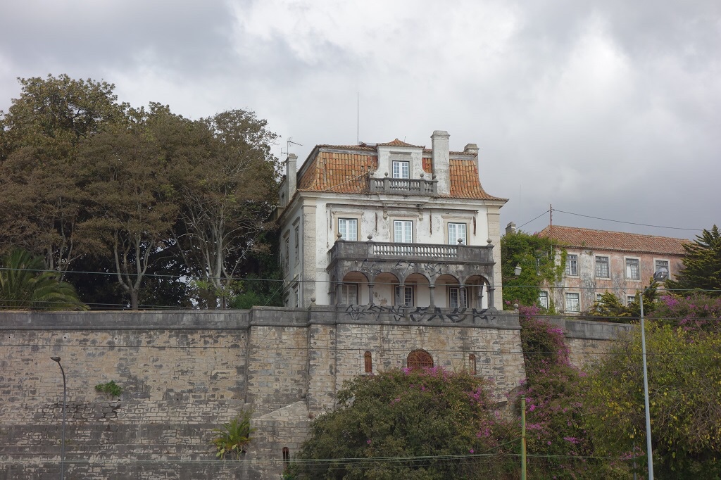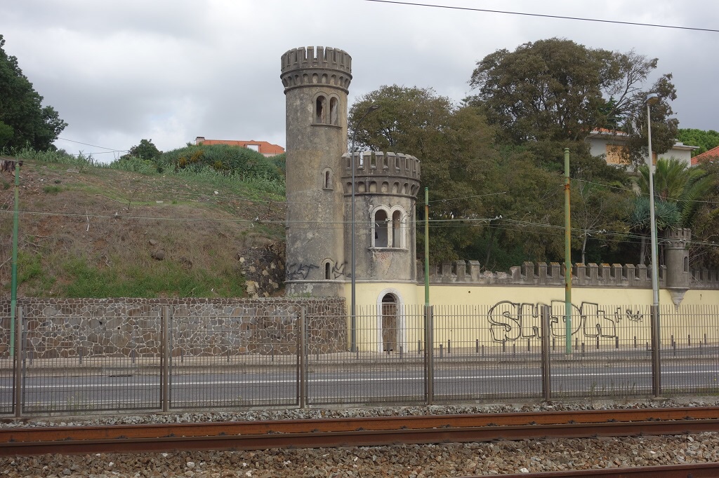 A linha do comboio é uma barreira física para que possamos passar de um lado para o outro, pelo que nos limitamos a ver ao longe os torreões e guaritas na alameda Hermano Patrone, já em Algés, pertencentes ao palacete Foz, construído na segunda metade do século 19 em terrenos que pertenceram ao Convento de São José de Ribamar – ainda se vê a sua bela varanda virada ao Tejo, mais uma propriedade ao abandono que aguarda retalho urbanizatório.