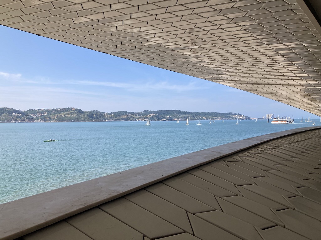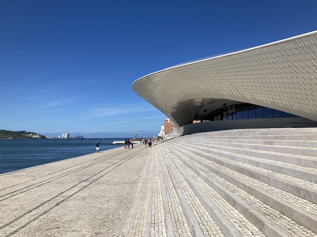 E desde 2016 tem a companhia de um novo edifício, projecto da arquitecta Amanda Levete, que resultou no Maat, Museu de Arte, Arquitetura e Tecnologia, com a sua deliciosa galeria oval, uma turbine hall à nossa medida, onde já pudemos apreciar interessantes instalações. A forma desta espécie de ovni, plantado na frente ribeirinha de Lisboa, pejada de grandes elementos arquitectónicos, é indubitavelmente um sucesso, fazendo já parte dela por direito próprio. A ideia subjacente a esta criação era a de permitir que os visitantes caminhassem sobre o edifício, nomeadamente sobre a sua cobertura em forma de arco, uma autêntica onda que se liga umbilicalmente ao rio, com ele mantendo uma relação física. Mais surpreendente, com este novo miradouro ganhámos uma nova vista para a Ajuda, com o seu Palácio em destaque, algo que antes só se percebia quando observada do rio.