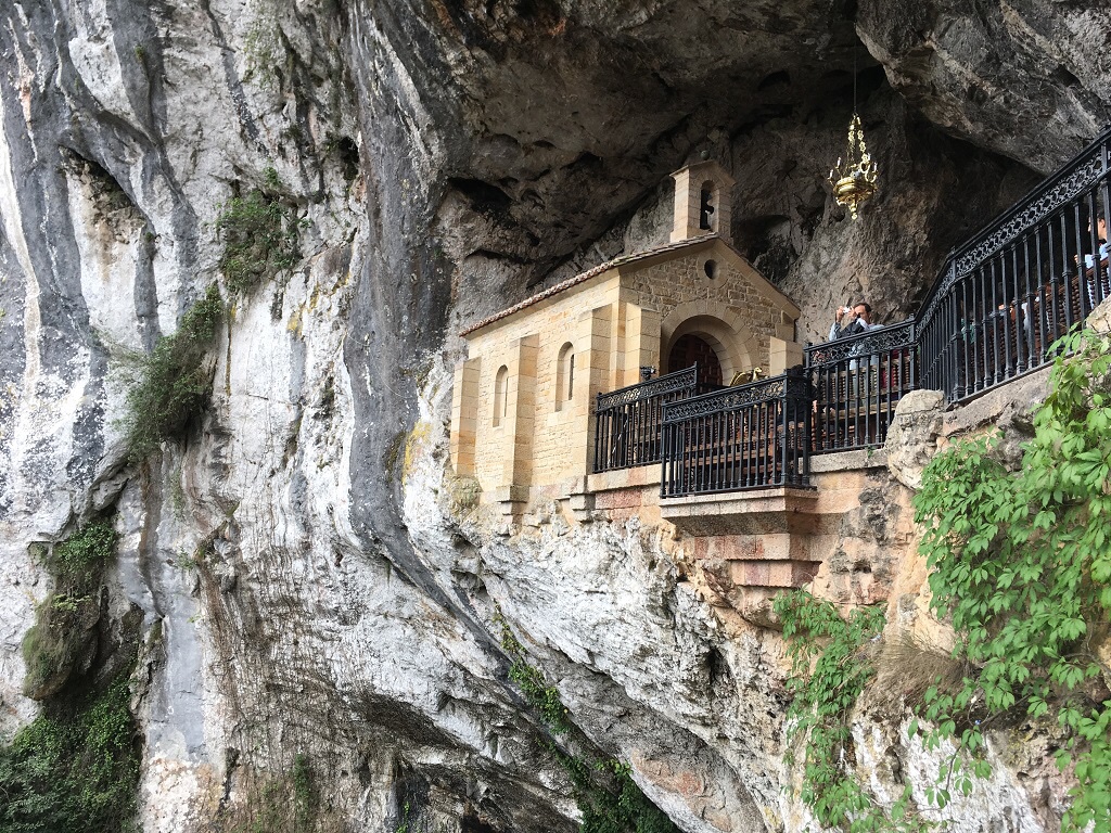 Covadonga é um dos sítios mais visitados das Astúrias. A basílica rosa, no meio da vegetação verde, destaca-se na paisagem. Em estilo neo-românico, foi inaugurada em 1901 e o santuário possui diversos elementos que muito atraem os mais crentes. Como a Cuevona, com cascata e laguinho, onde são mandadas moedas na esperança de que os desejos sejam cumpridos. Ou a Santa Cueva, com imagem da Virgem de Covadonga no seu interior, conhecida por La Santina. Também, uma estátua em honra de Don Pelayo e a cripta simbólica deste que é considerado o primeiro rei das Astúrias, o herói que no ano de 722 ganhou uma batalha decisiva durante a Reconquista Cristã, não se deixando vergar aos mouros.