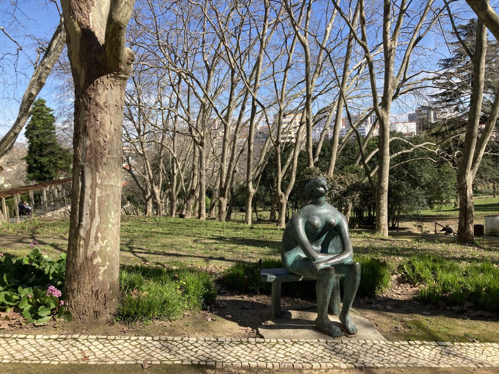 Há diversos caminhos, bancos de jardim, elementos escultóricos, mesas para piquenique e muita relva, para além de um parque infantil com aranha e um parque canino.