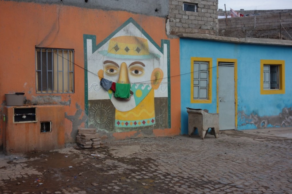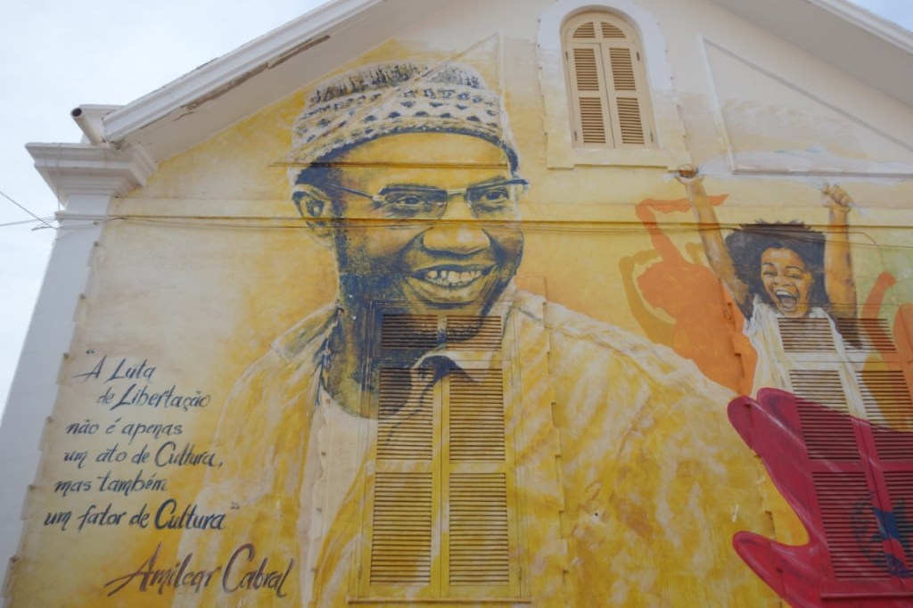 Pelas ruas da cidade, há que estar atento ao movimento, às cores e aos vários detalhes de arte urbana, como os frequentes stencils de Cesária Évora. Na Achada Grande, na encosta acima do Plateau, estão muitos exemplos desta arte urbana, resultado de um projecto de revitalização do bairro que foi palco de um festival de arte pública que levou até lá diversos artistas desse género. Vhils foi um deles, estando representado, precisamente, pela tal imagem de Amílcar Cabral. E o bairro tem ainda uma enorme vista para o Plateau e arredores, com o porto e a baía mesmo diante nós.