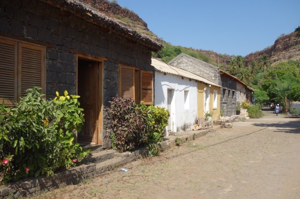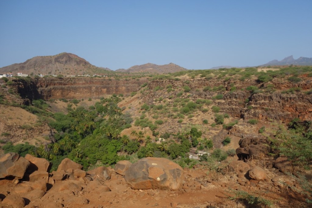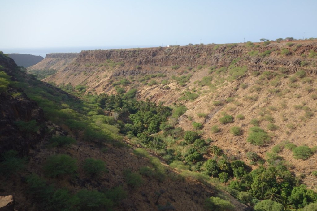 Vale a pena caminhar desde Calabaceira (peça ao motorista da Hiace, o transporte público local, para o deixar por lá), povoação sobre o vale, até à Cidade Velha sempre pelo leito da ribeira hoje seca e perceber as especificidades da sua vegetação, um misto de árvores de grande porte de tipo subtropical e plantações agrícolas. A água é escassa, problema endémico no arquipélago, mas ainda se veem diversas pessoas a trabalhar as suas plantações. A paisagem, essa, é soberba, um corredor de natureza exuberante encaixado entre duas enormes paredes naturais, onde encontramos um portentoso e inesquecível baobá. Há por aqui, ainda, instalações de grogue e mel, mas acabámos por não as perceber. À chegada à Cidade Velha vai-se descobrindo a Fortaleza de São Filipe no topo de uma dessas “paredes”.