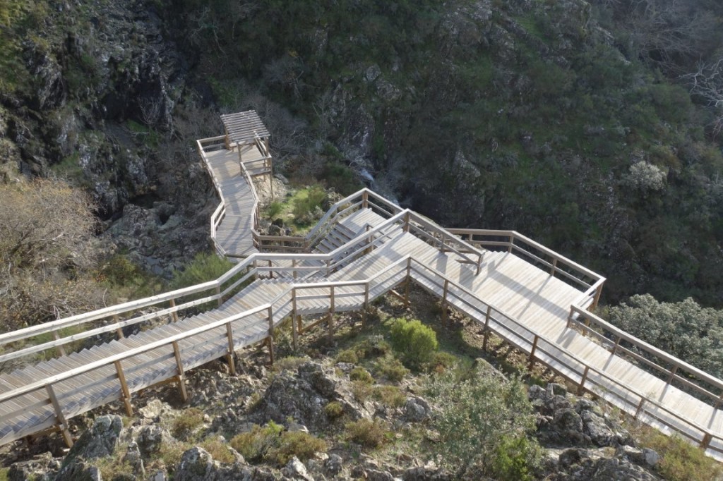 Outro dos lugares que não conhecíamos é o da Ribeira das Quelhas e seus passadiços. Já concelho de Castanheira de Pera, junto à aldeia do Coentral está esta novidade que no Verão de 2020 irrompeu pela paisagem da Serra da Lousã. À partida, poderíamos pensar “mais uns passadiços?”, mas na verdade parece-nos que estes fazem sentido, uma vez que apesar da (bem conseguida) intromissão na paisagem permitem que qualquer pessoa possa conhecer um pedaço de natureza bruta que de outra forma nunca conseguiria se tivesse que galgar encosta acima (antes da construção dos passadiços havia que percorrer um dos trilhos mais duros da serra).