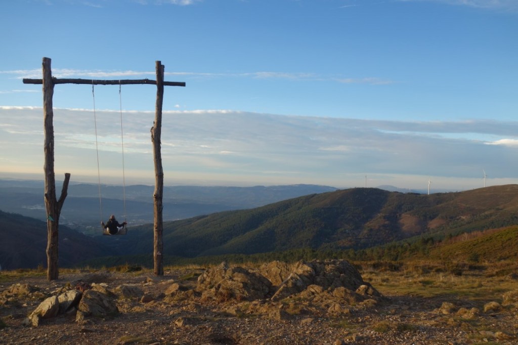 Pouco abaixo, um apontamento da moda, o baloiço do Trevim, construído no âmbito do projeto Isto é Lousã. Tal como a paisagem que permite desfrutar, é gigante. E muito concorrido. Ao fundo, montanha afora, está a densa vegetação onde se escondem os tais recantos que fazem as delícias dos visitantes da Lousã. Já por aqui andámos e disso demos conta, tendo visitado o Castelo da Lousã e sua praia fluvial da Senhora da Piedade e as aldeias de xisto.