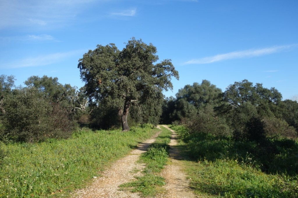 Um pouco mais afastado do curso de água, e parte do percurso circular pela reserva, podemos percorrer um montado que em tempos foi plantado para dar cortiça e servir de pasto para o gado bravo, sendo agora uma floresta de sobreiros com exemplares arbóreos com vigorosos troncos e copas.